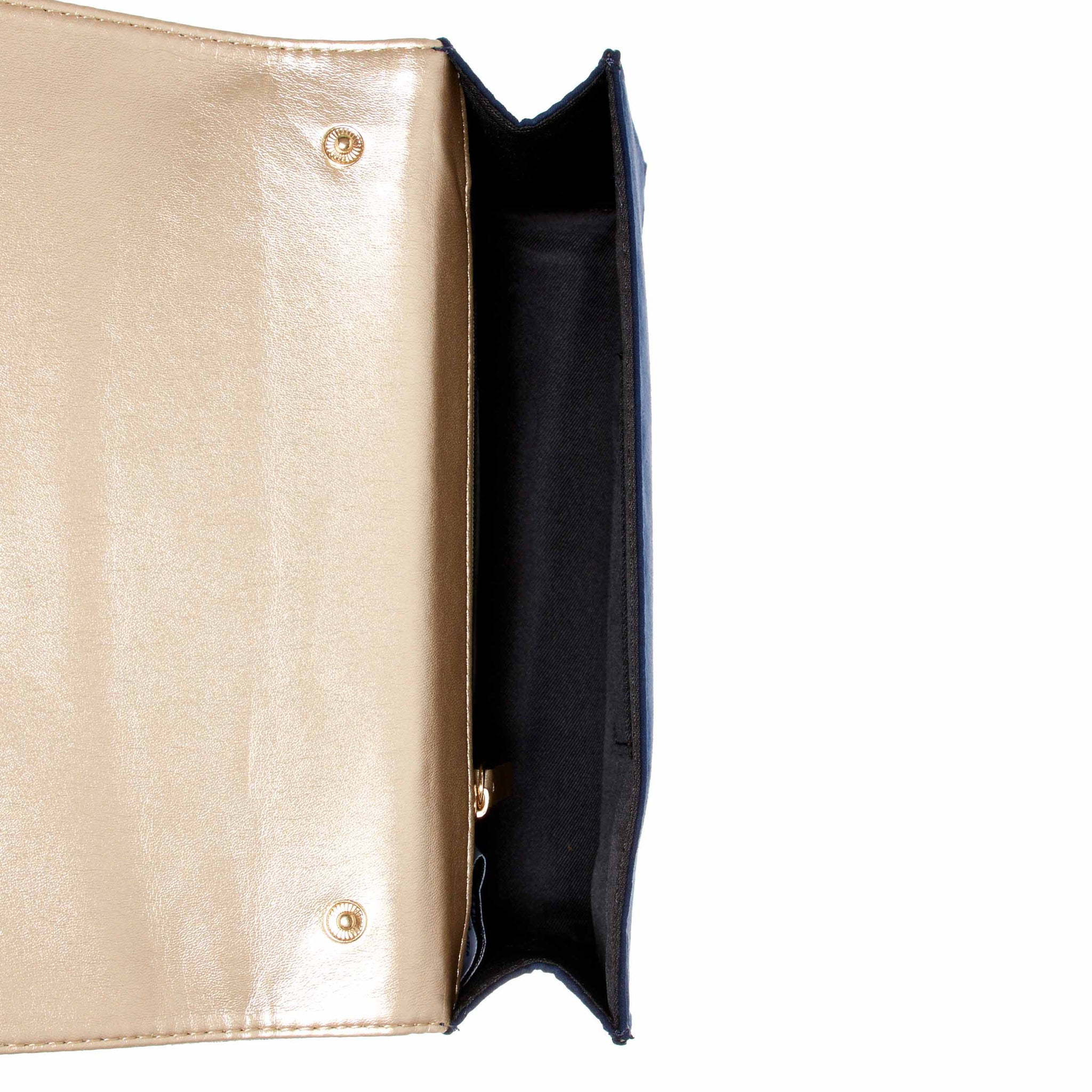 Sleek convertible clutch to chain shoulder bag. Perfect for a night out or special occasion. Chain shoulder bag is removable and includes interior pockets to keep you organized with a magnetic snap flap closure.