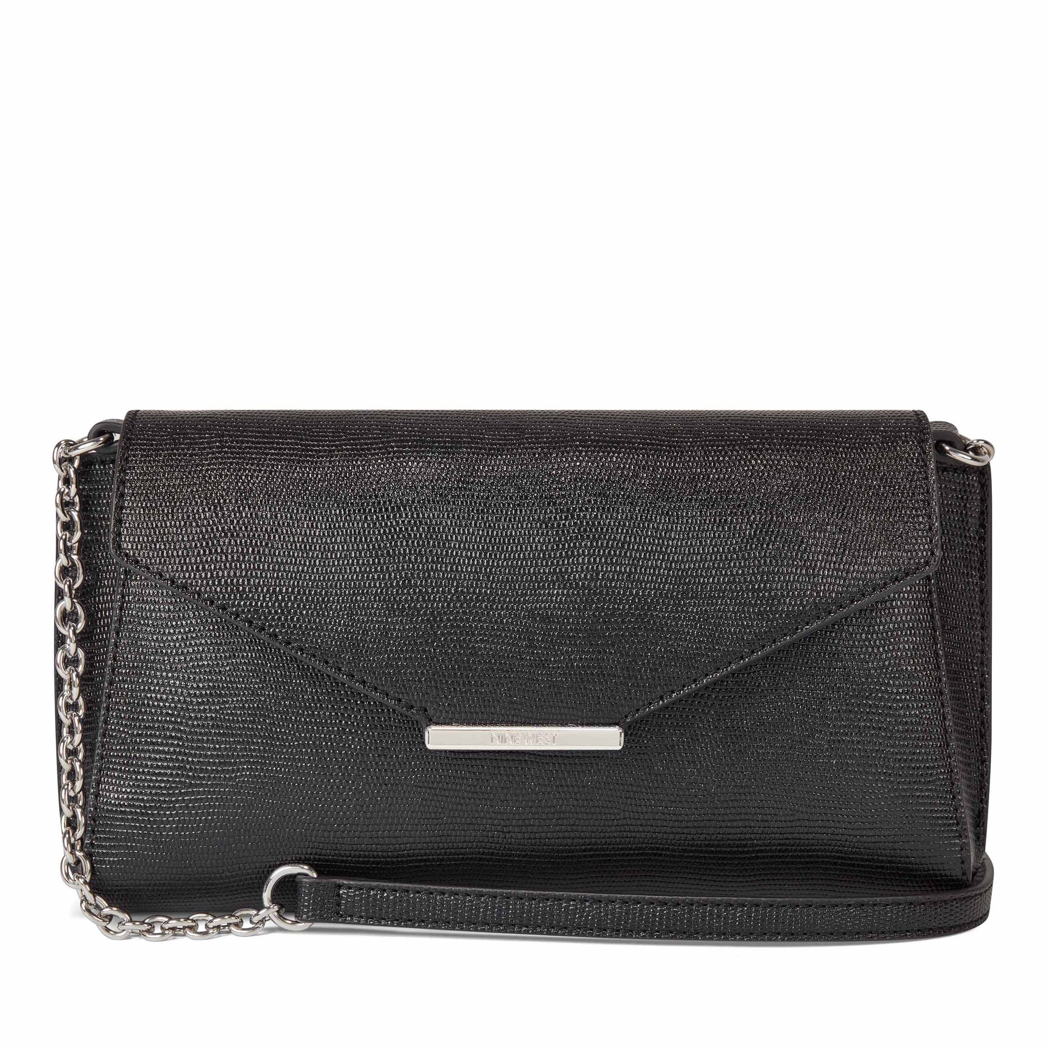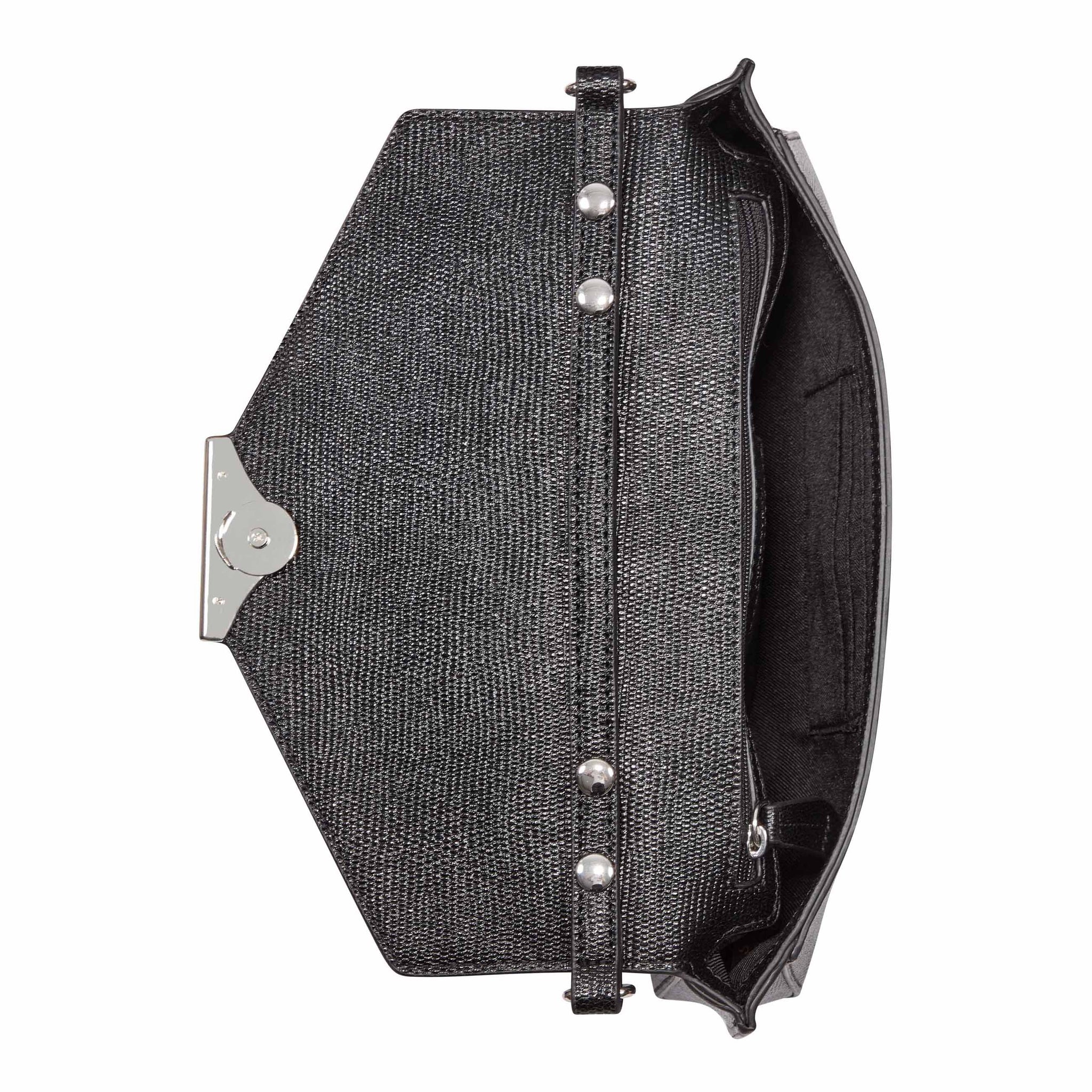 Perfect going out bag that can be worn as a clutch or a shoulder bag. Hardware details on flap and chain shoulder strap. Interior includes zipper pocket and slip pocket. This is exclusively on Nwcom.