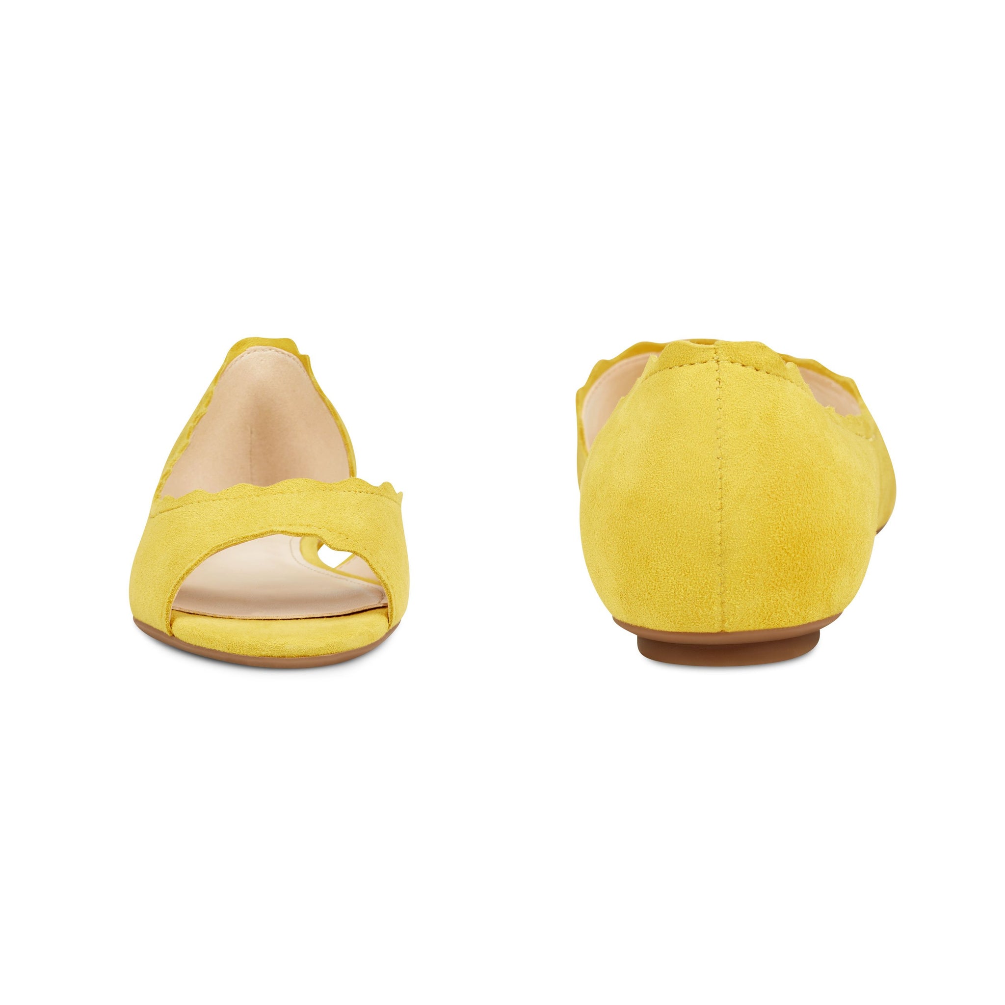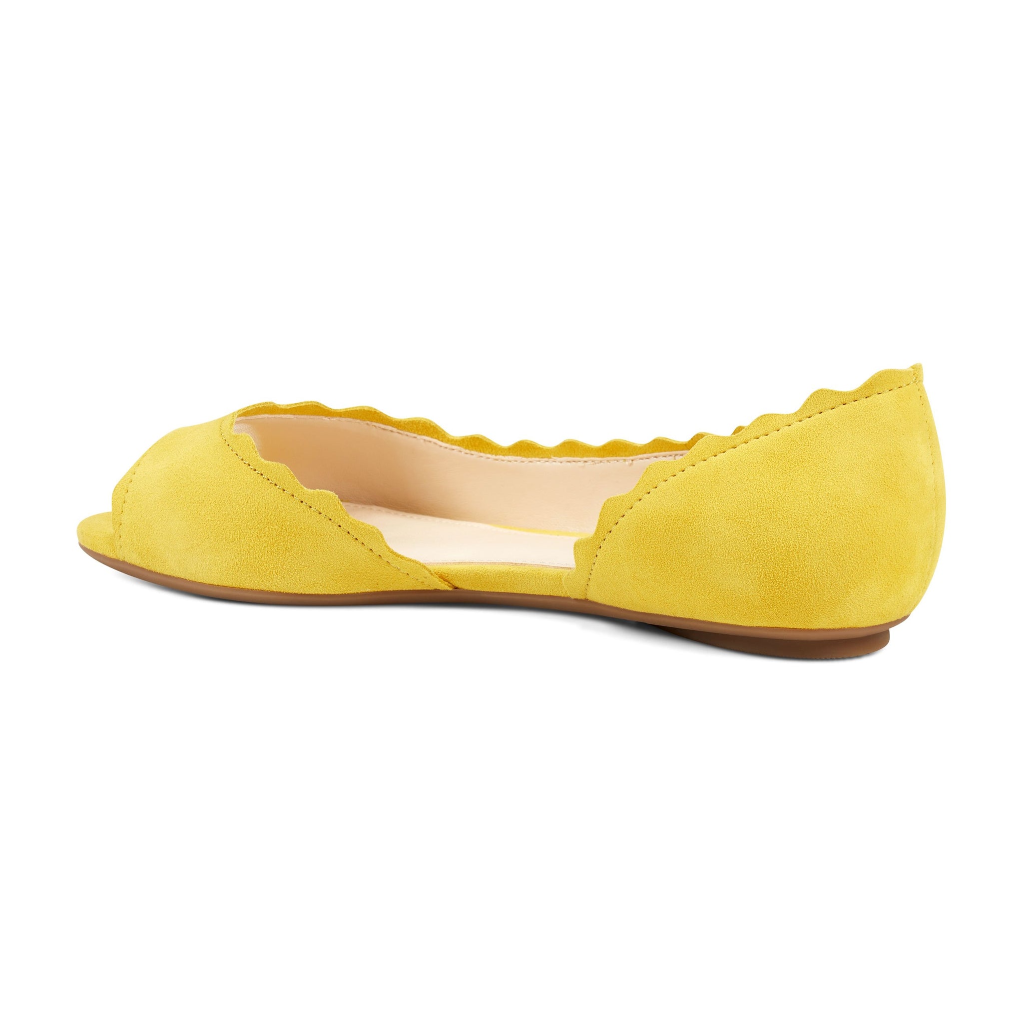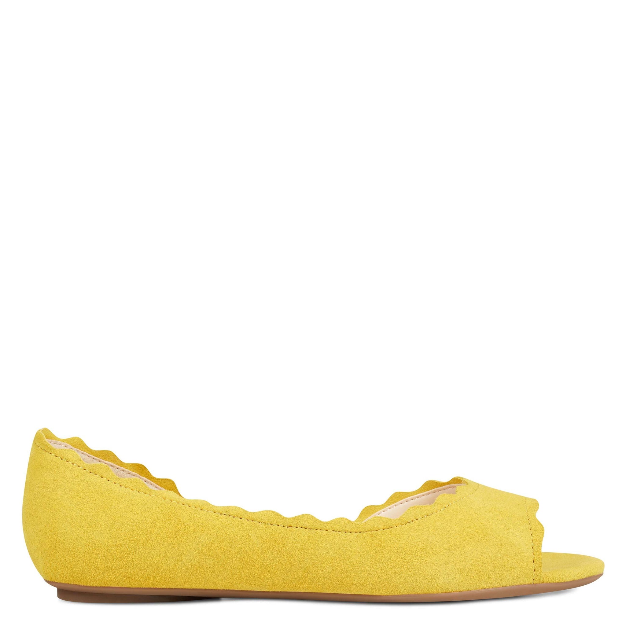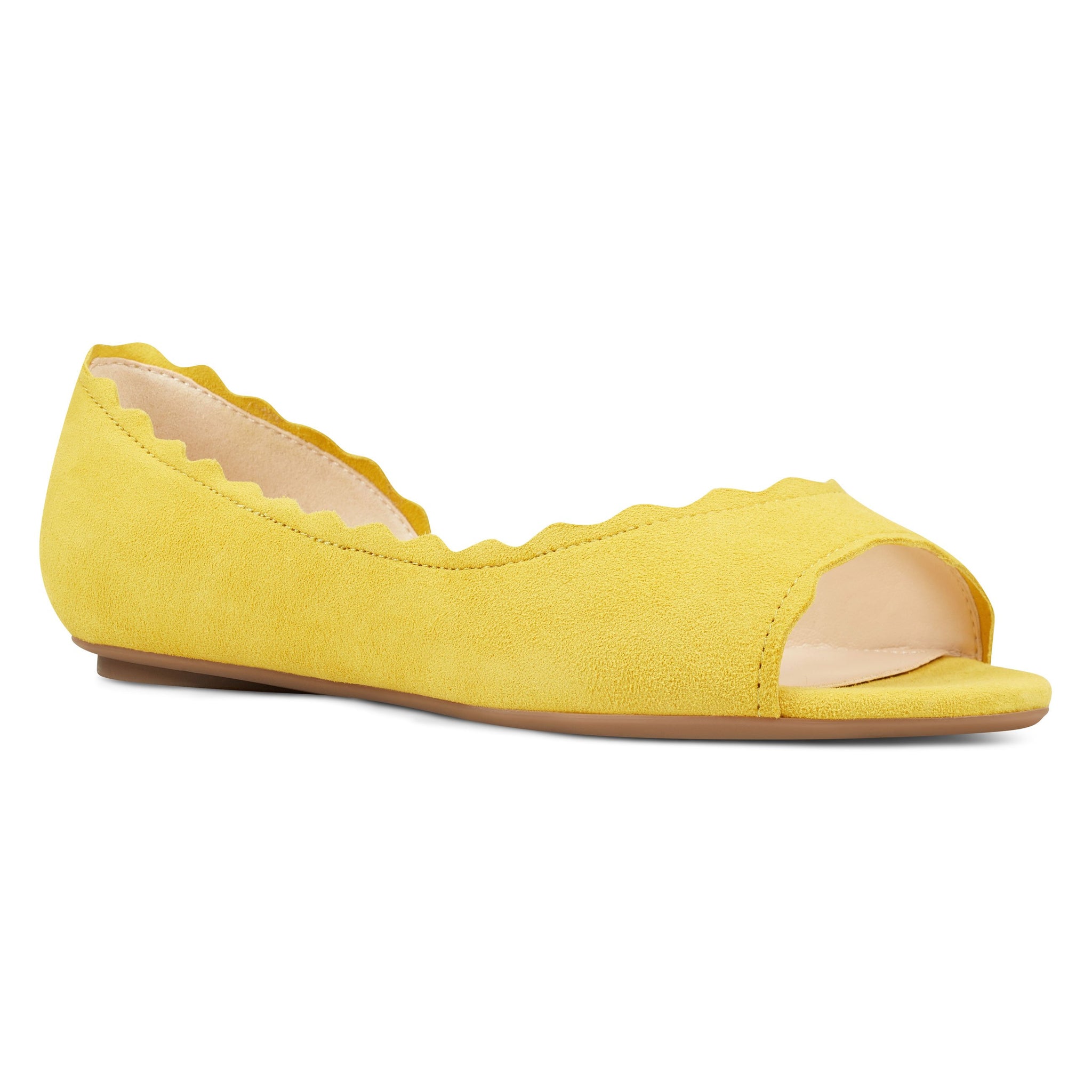 A scalloped contemporary half d'Orsay topline updates our Breeze flat sporting an open toe.