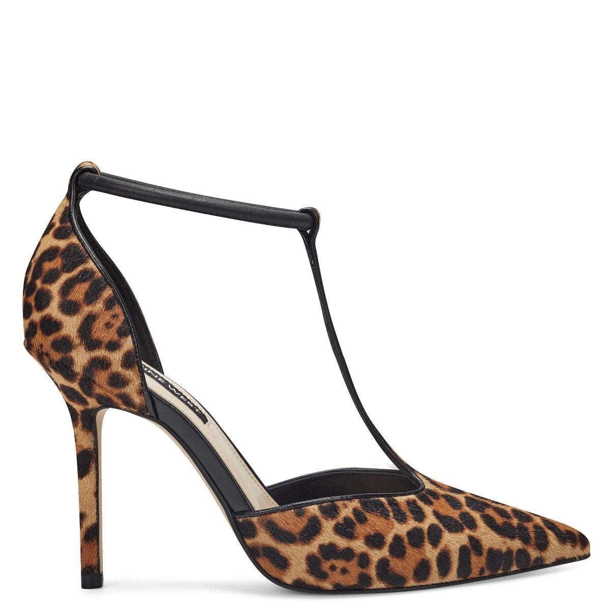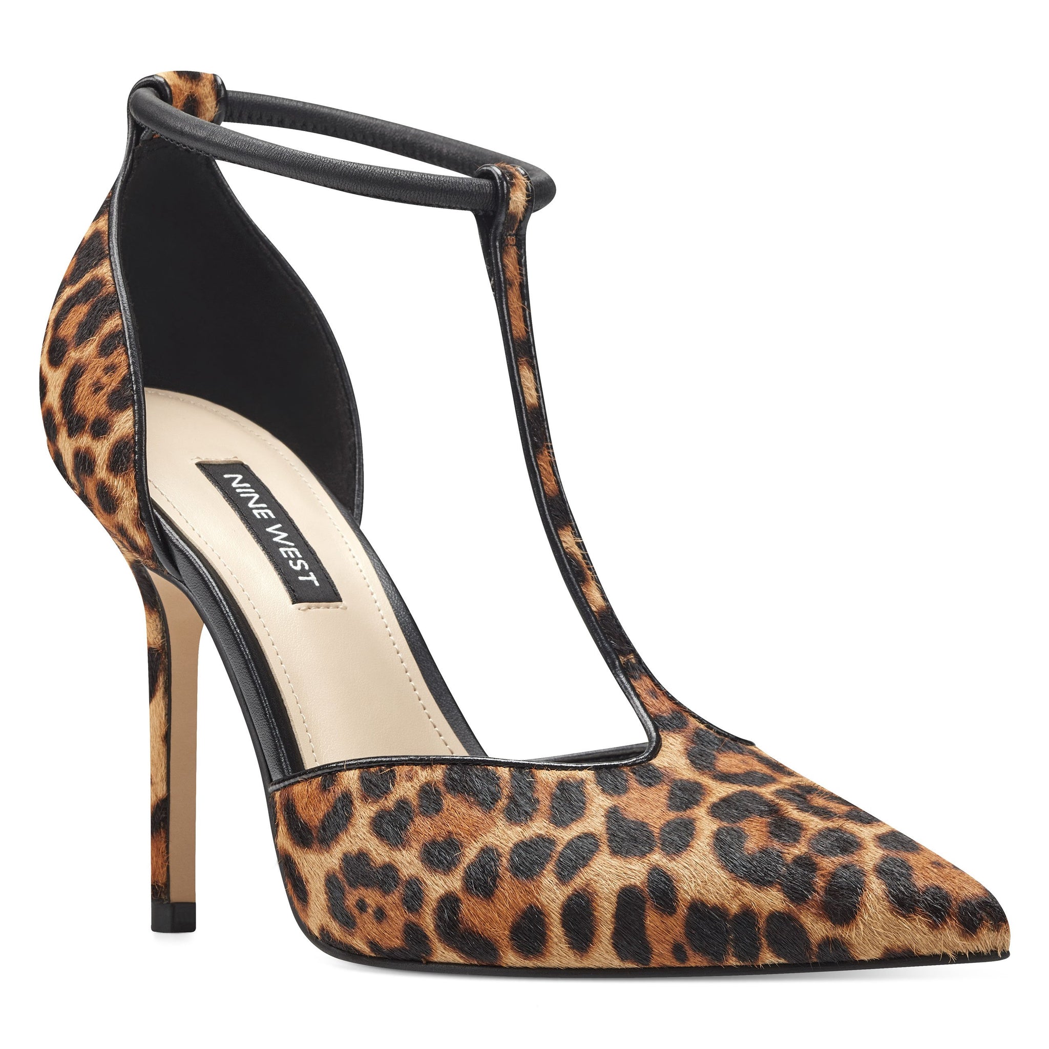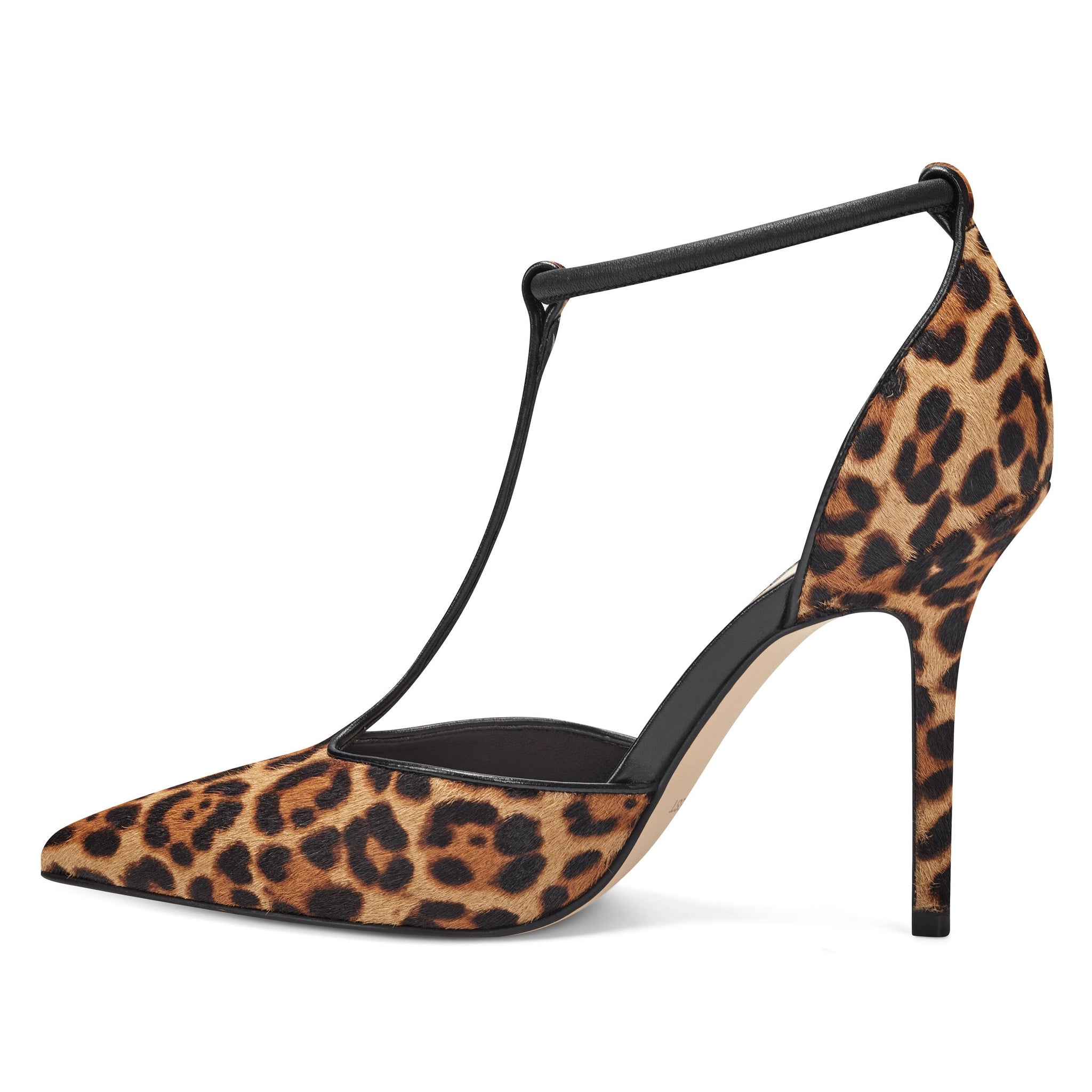 A slender T-strap descends dramatically from the buckle-detailed ankle strap to the pointy toe of our Breezy pump styled with open sides, perched on a towering 3.94" heel.