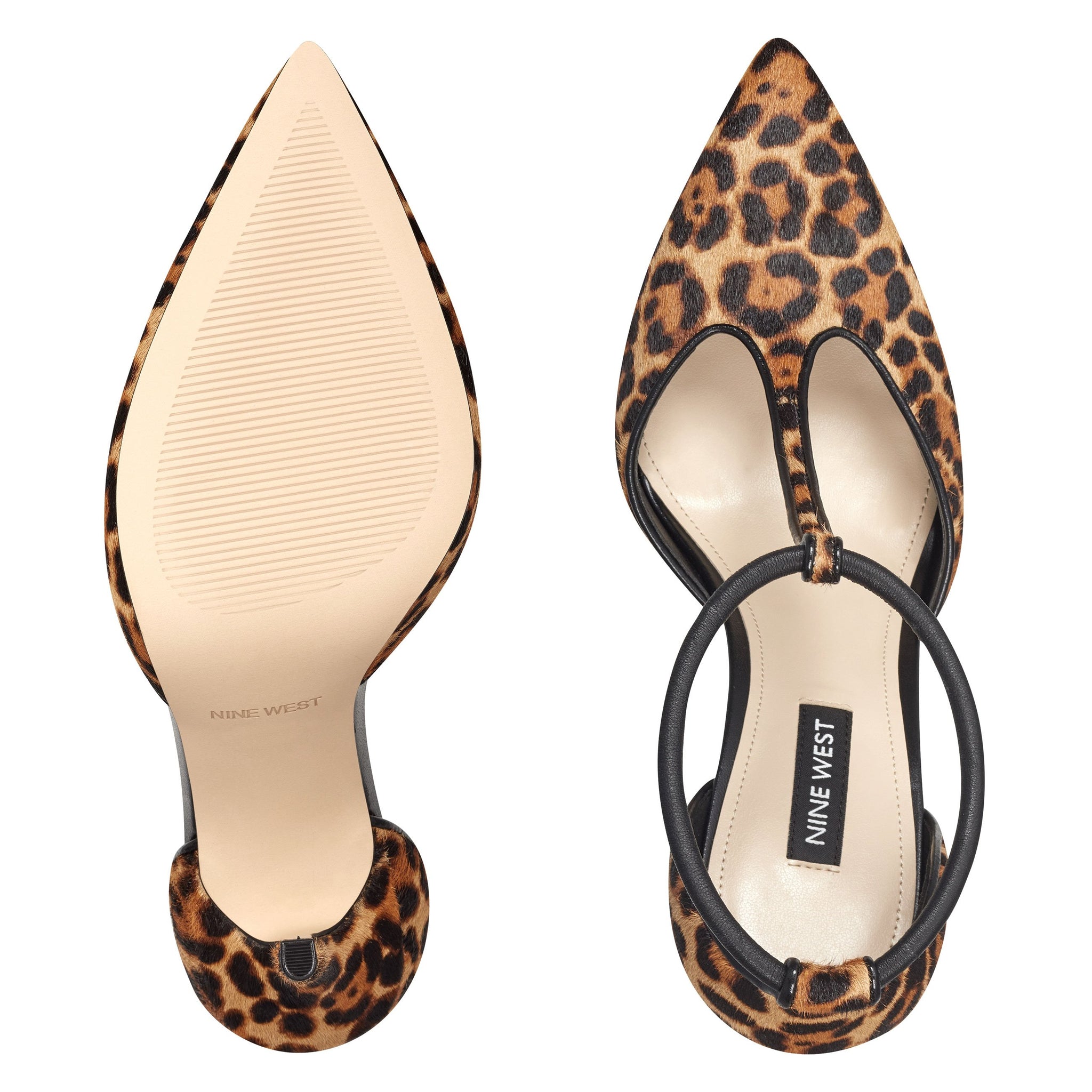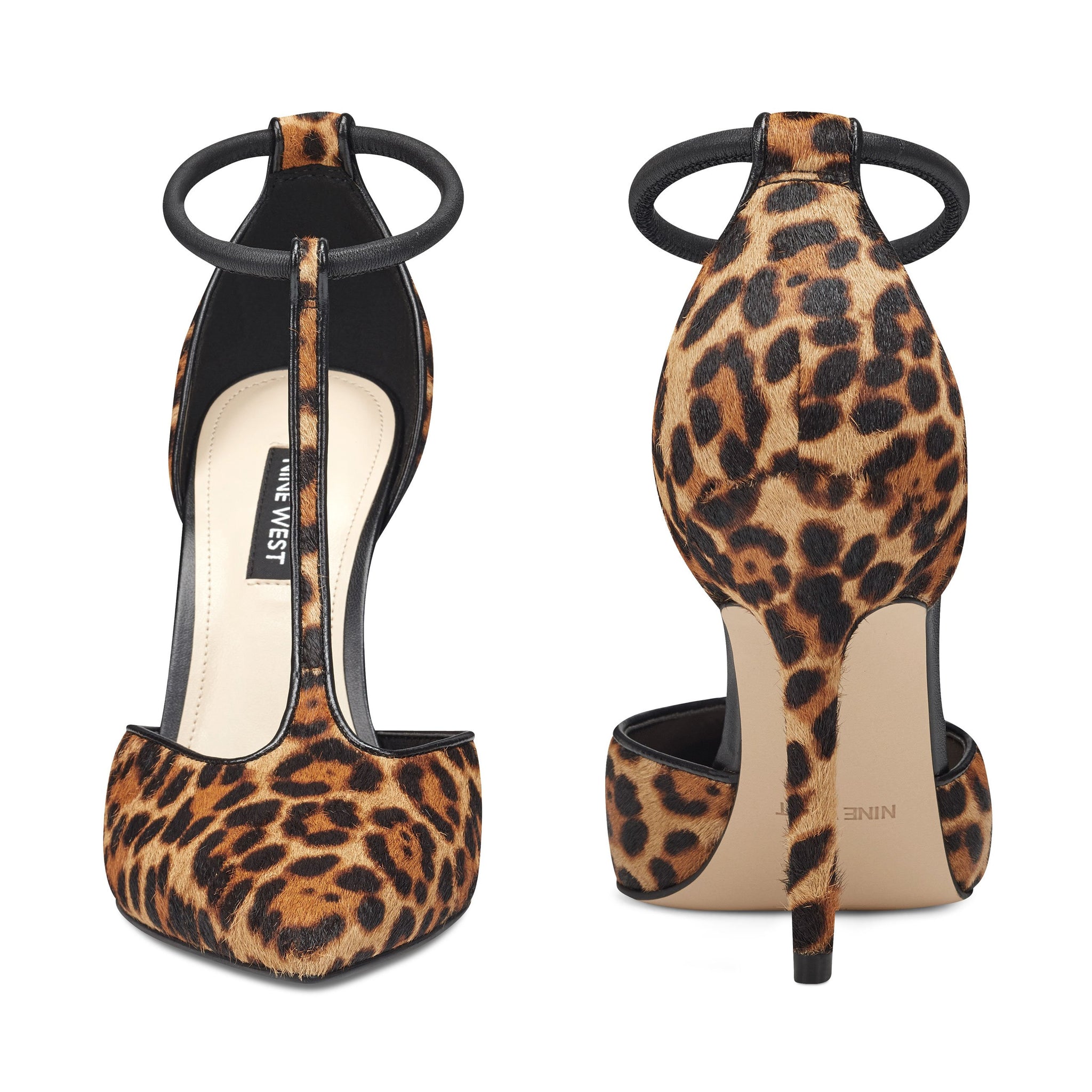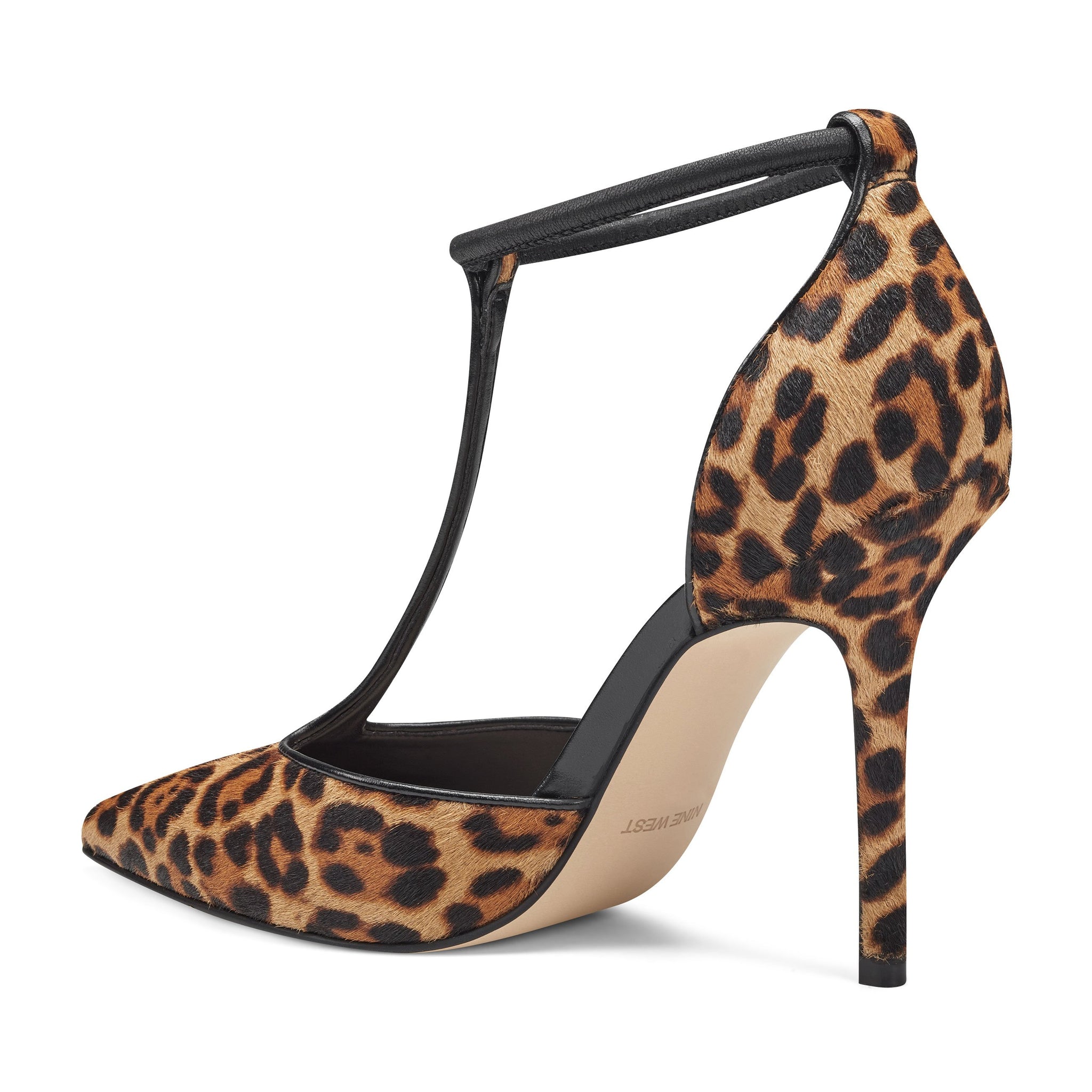 A slender T-strap descends dramatically from the buckle-detailed ankle strap to the pointy toe of our Breezy pump styled with open sides, perched on a towering 3.94" heel.