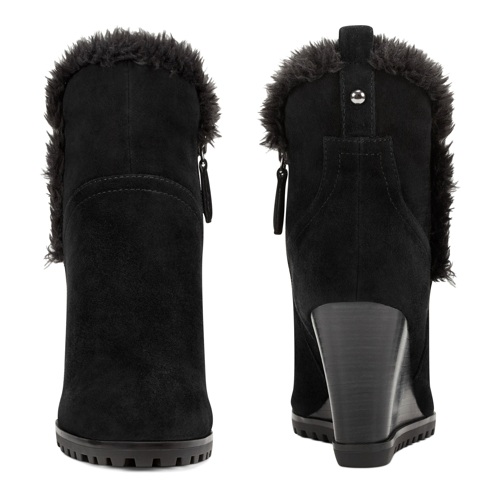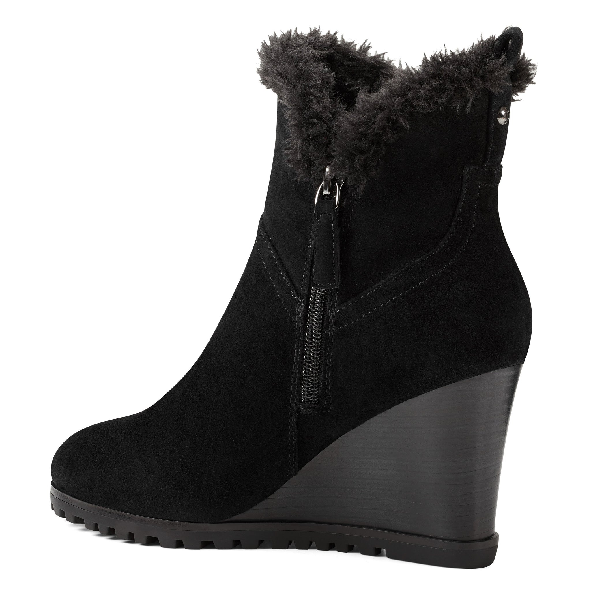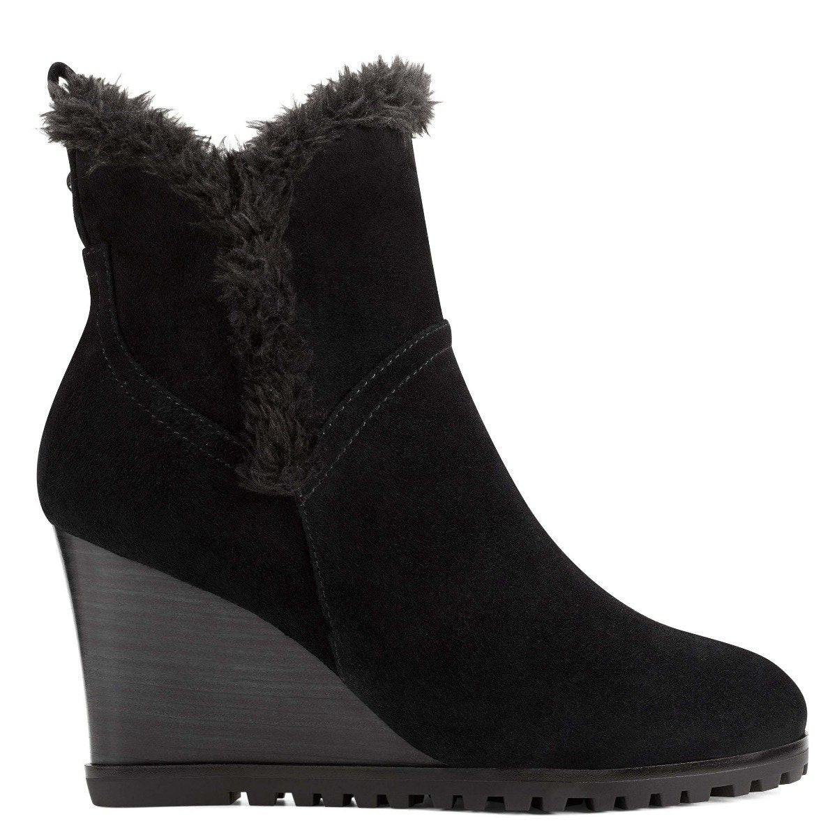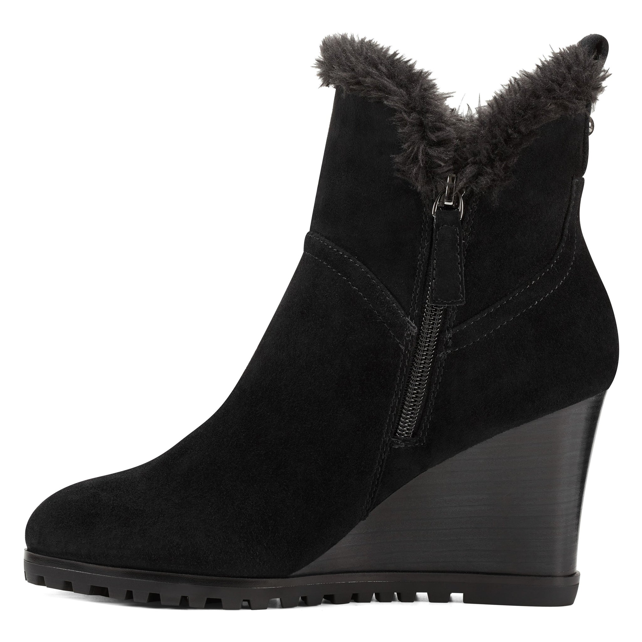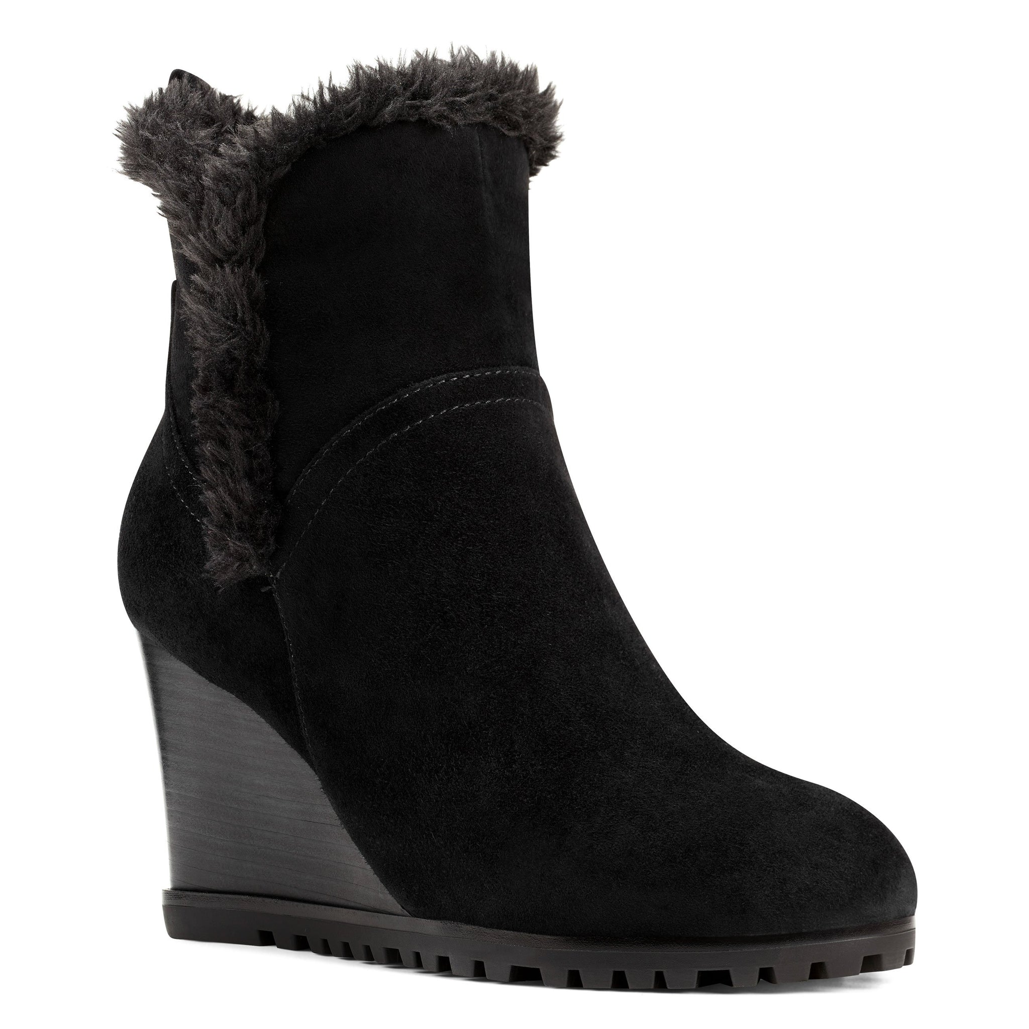 A tuft of faux fur surrounding the top of our Cici wedge ankle boots adds a splash of fun to this round-toe design lifted by a 3.15" wedge heel.