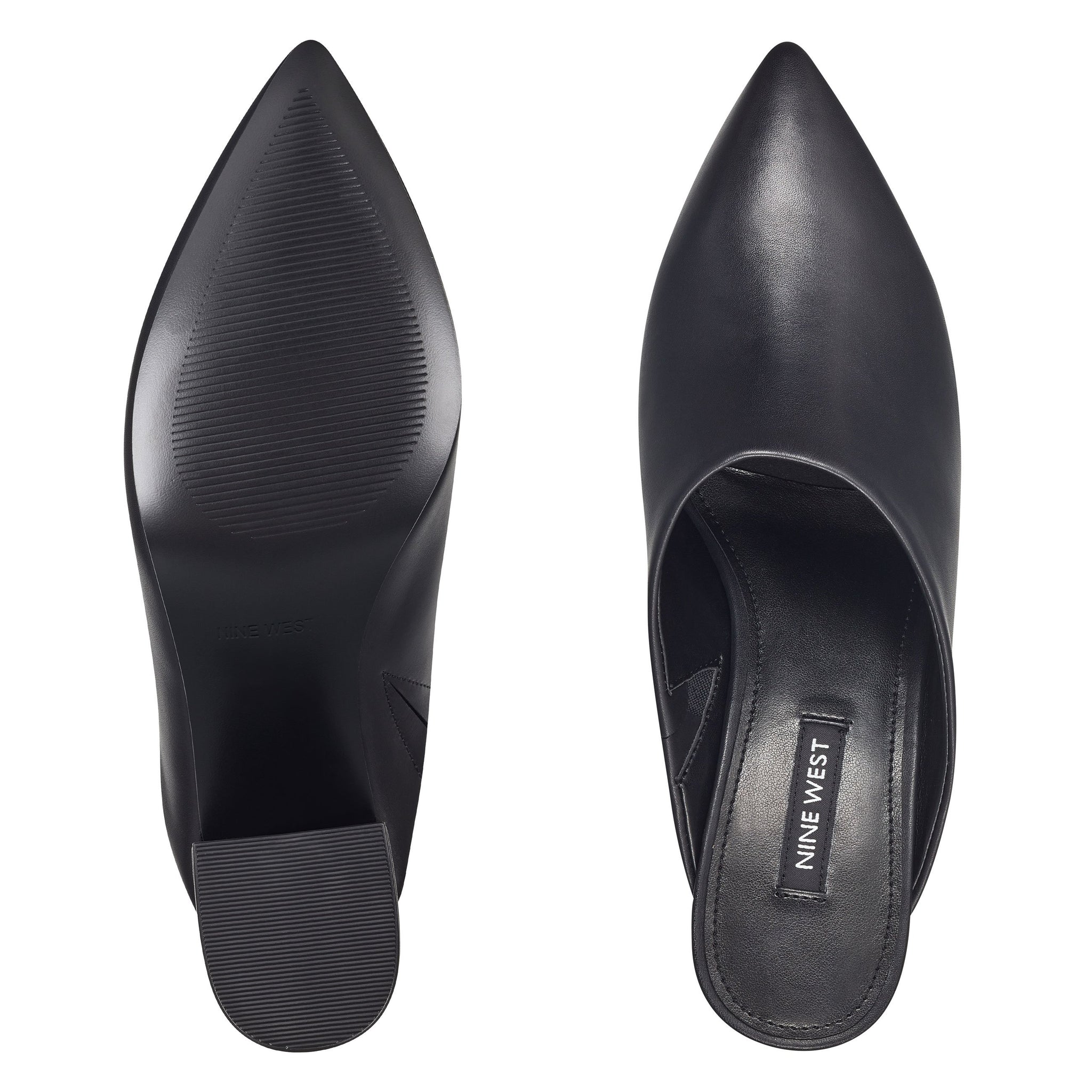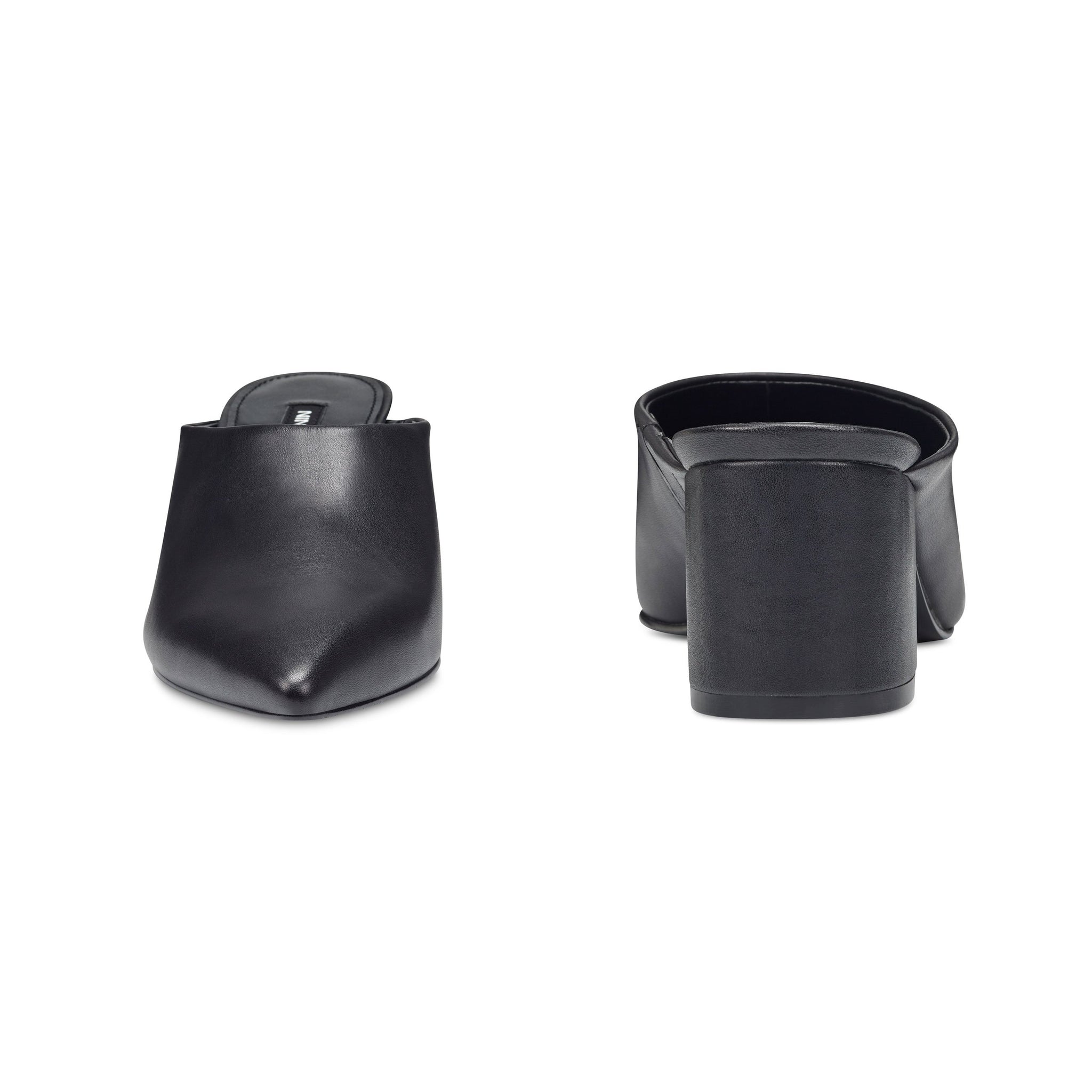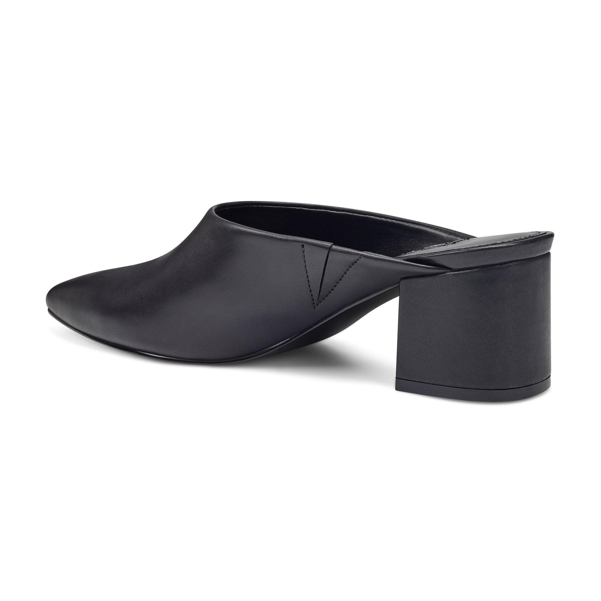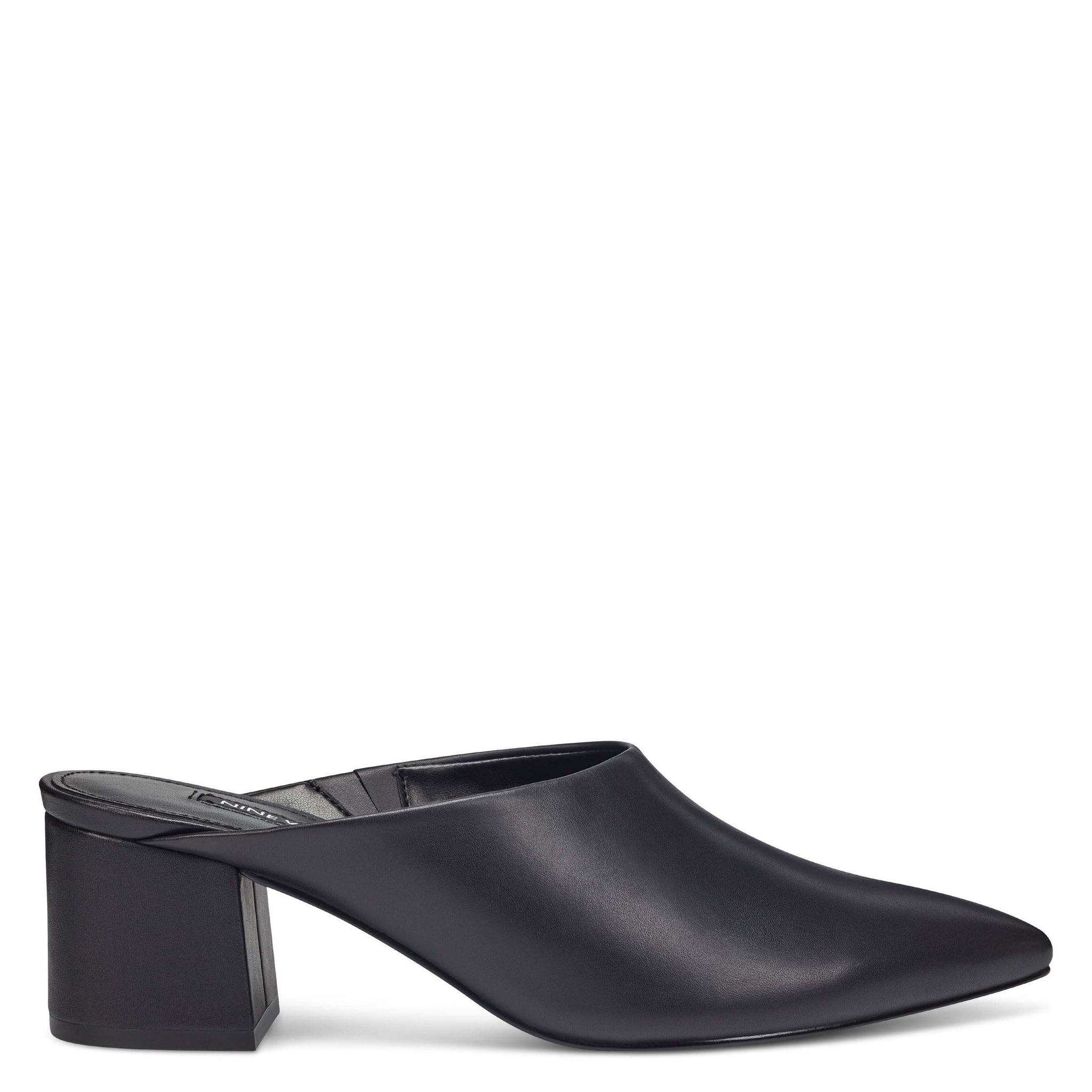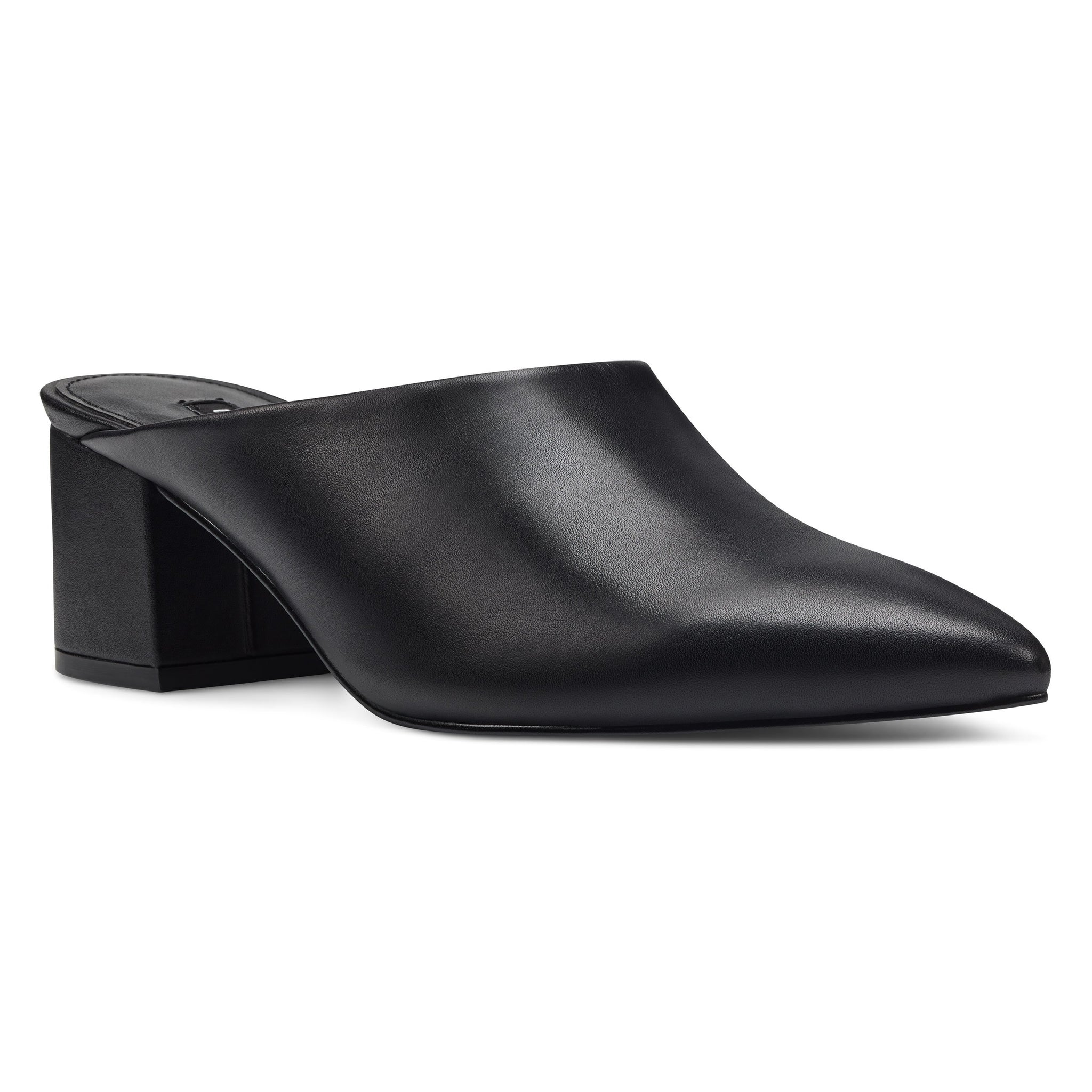 A medium block heel and a high topline balance the dramatic pointy toe of our Clair mule with versatile appeal.