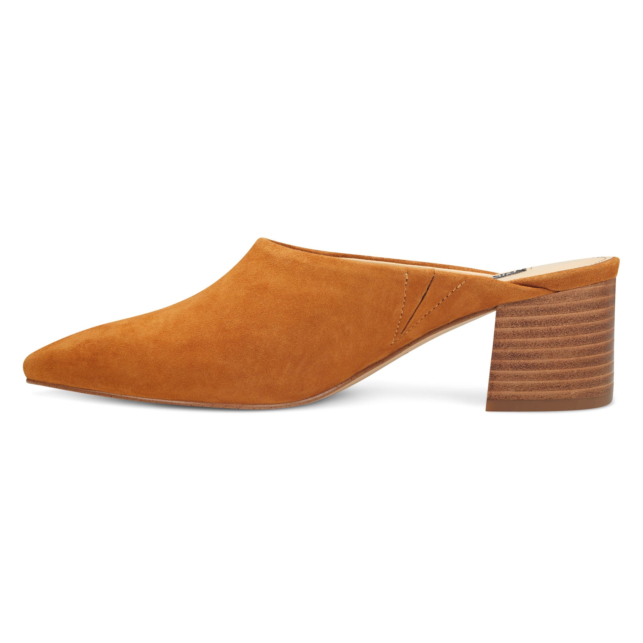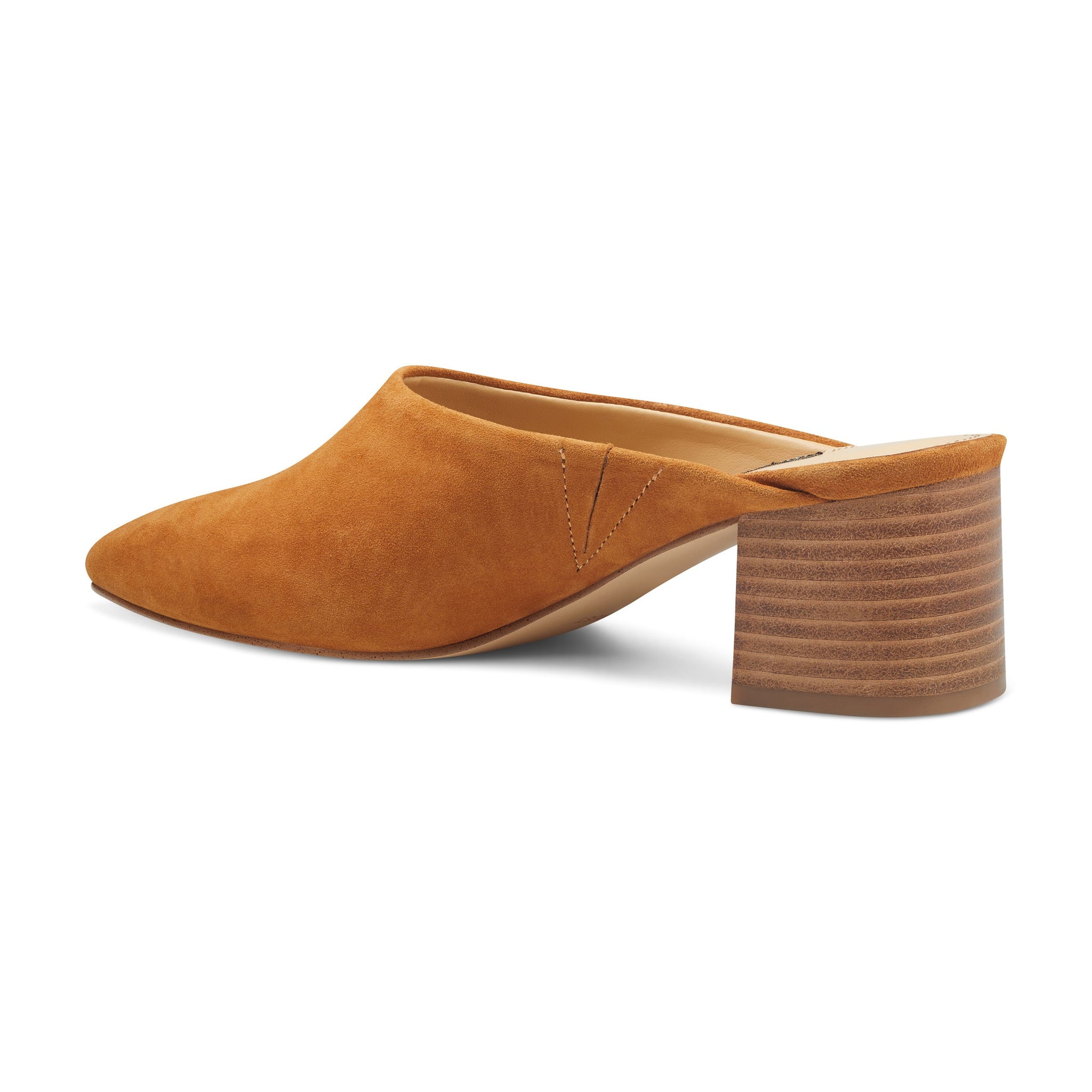 A medium block heel and a high topline balance the dramatic pointy toe of our Clair mule with versatile appeal.