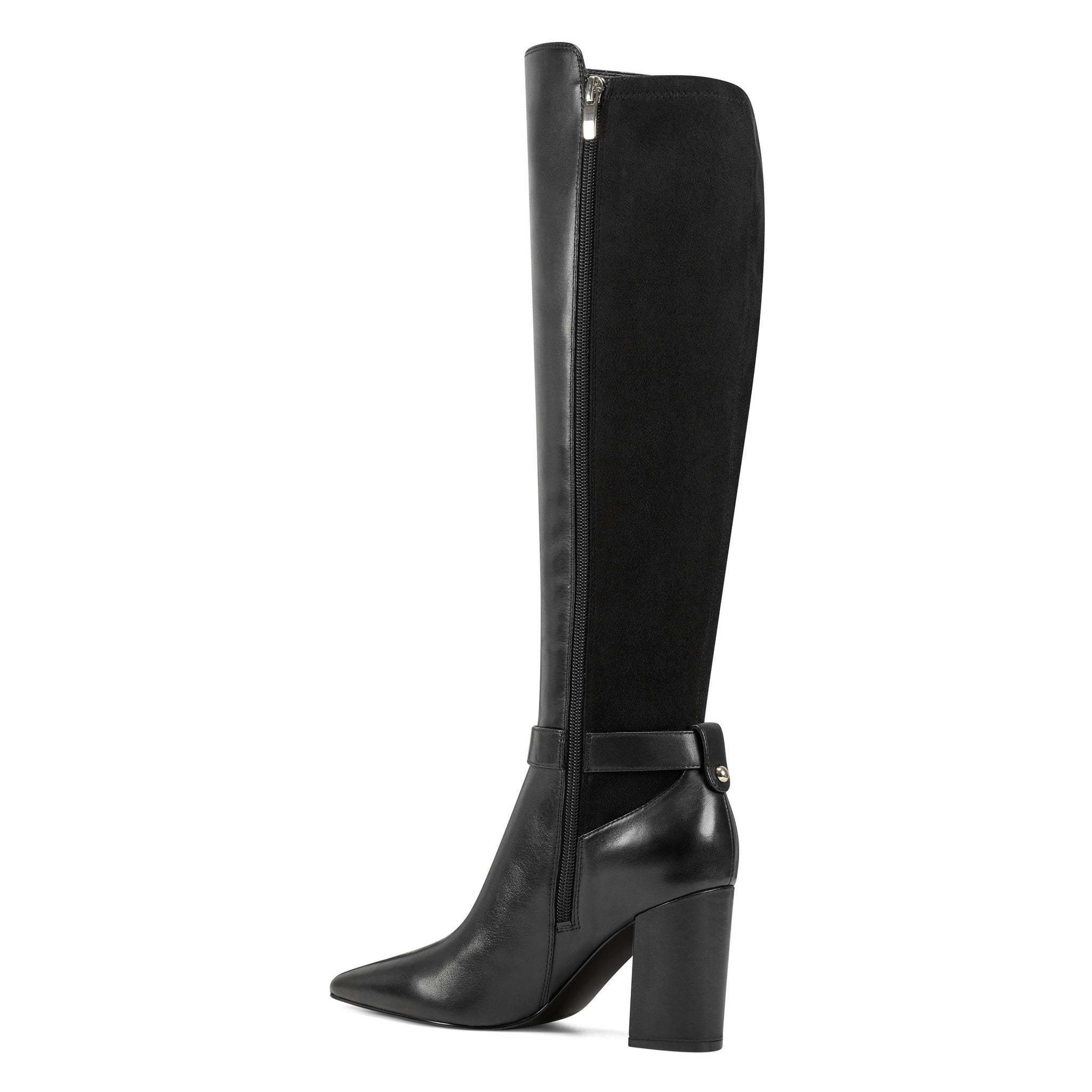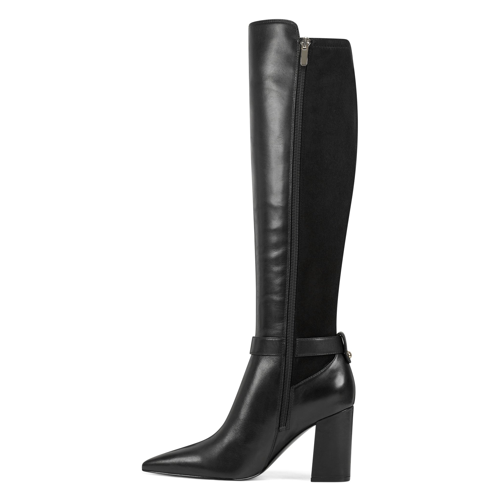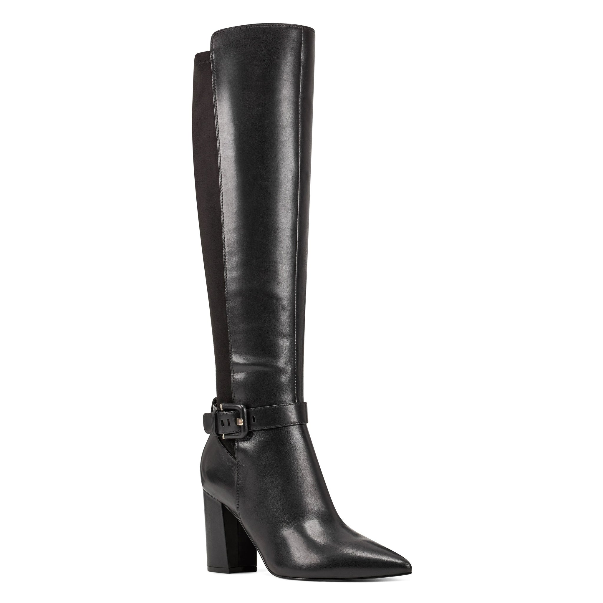 A faux buckle around the ankle lends added panache to our Collins tall boots lifted by a 3.27" heel and featuring a leg-lengthening pointy-toe design.