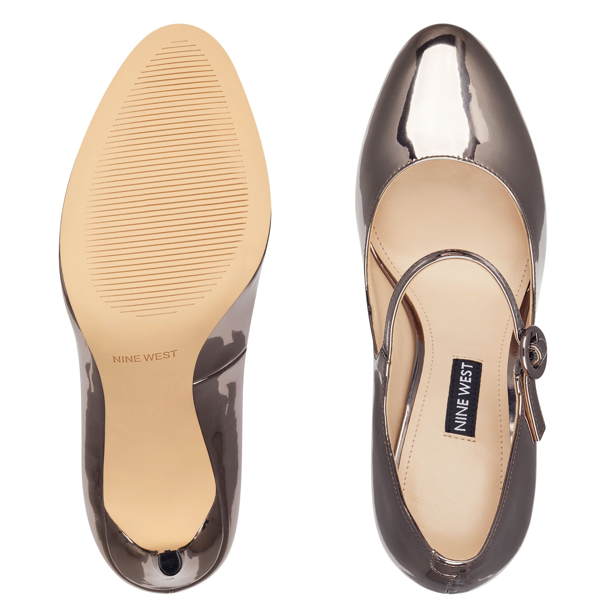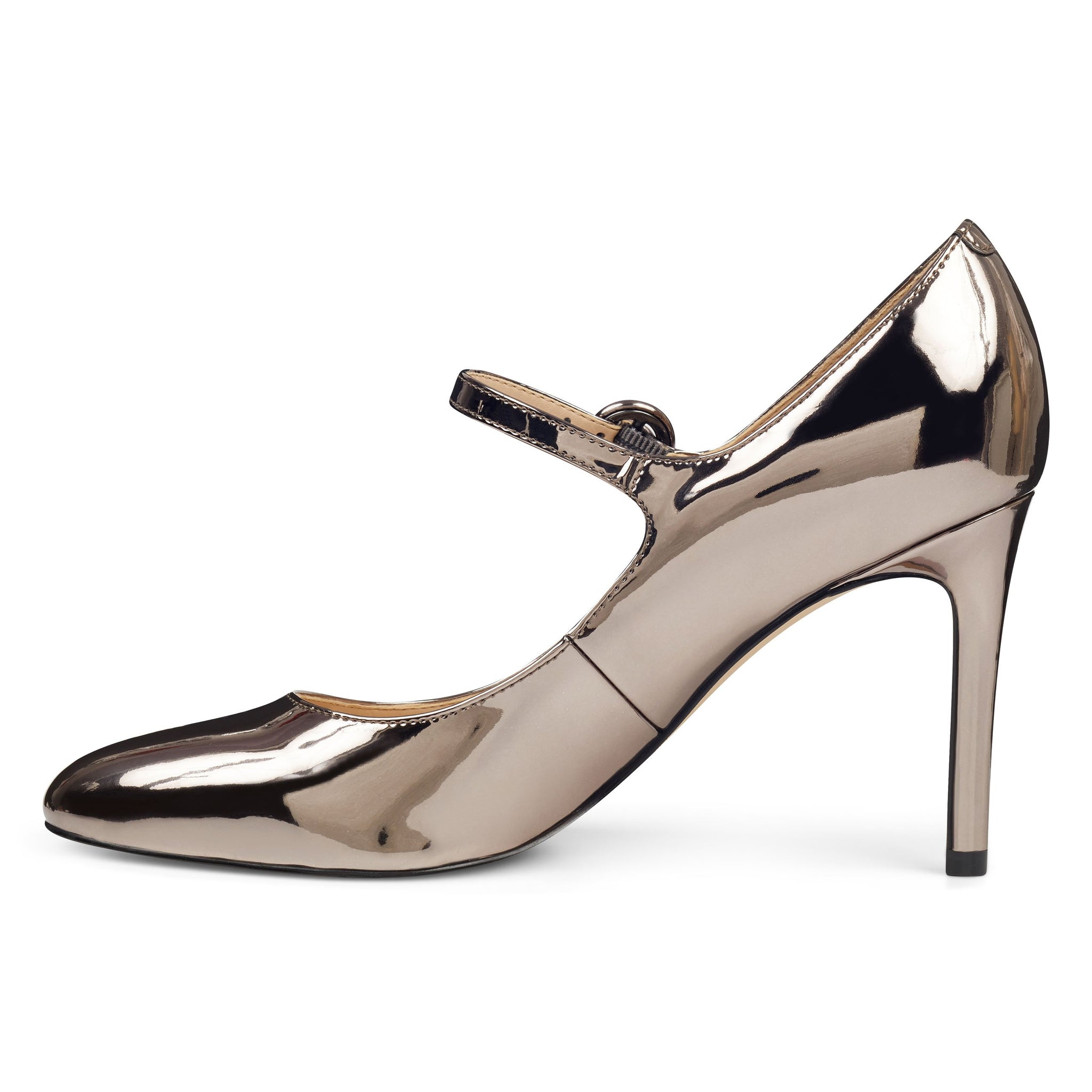 A svelte mary-jane strap bridges the vamp of a sophisticated suede pump lifted on a classic 3.43 heel.