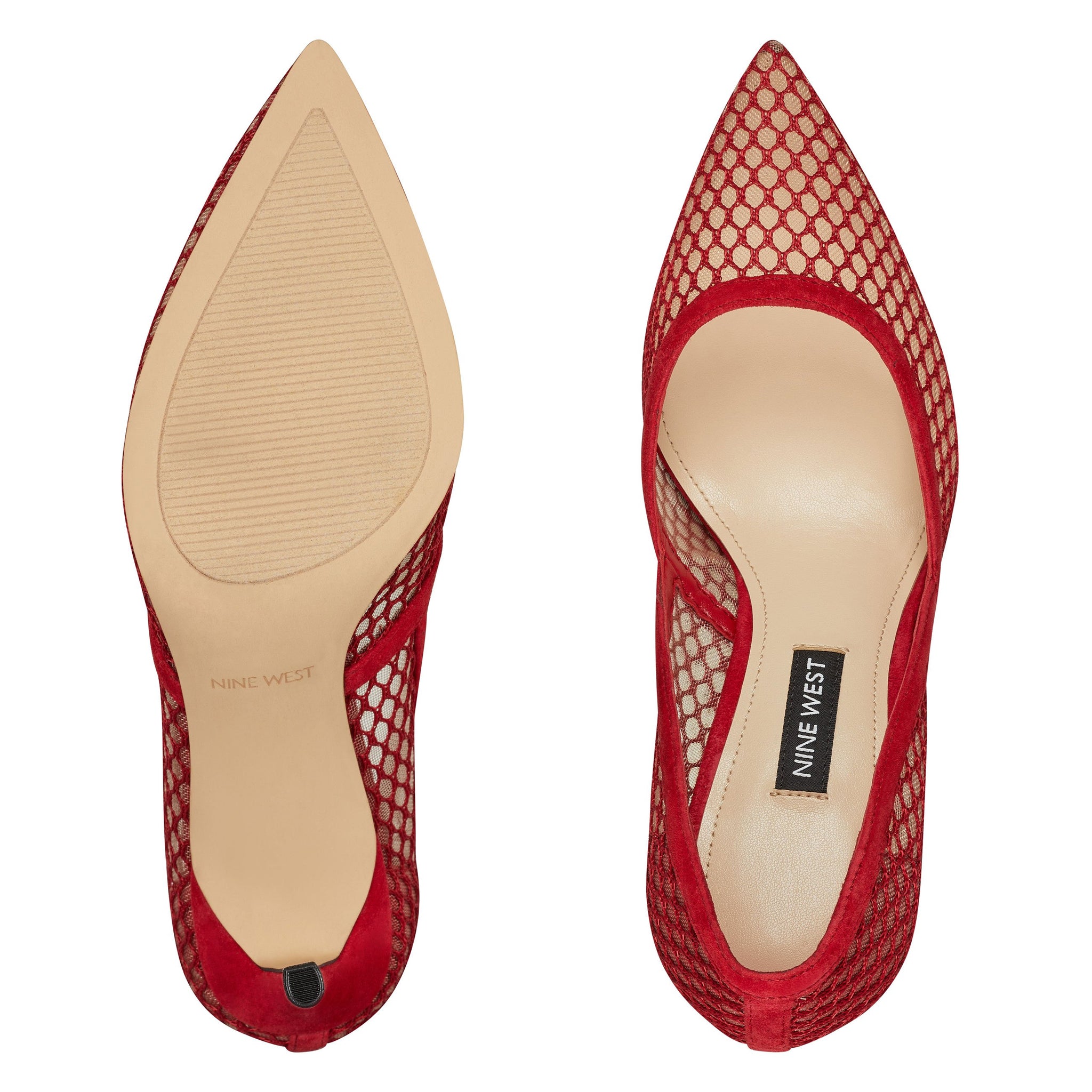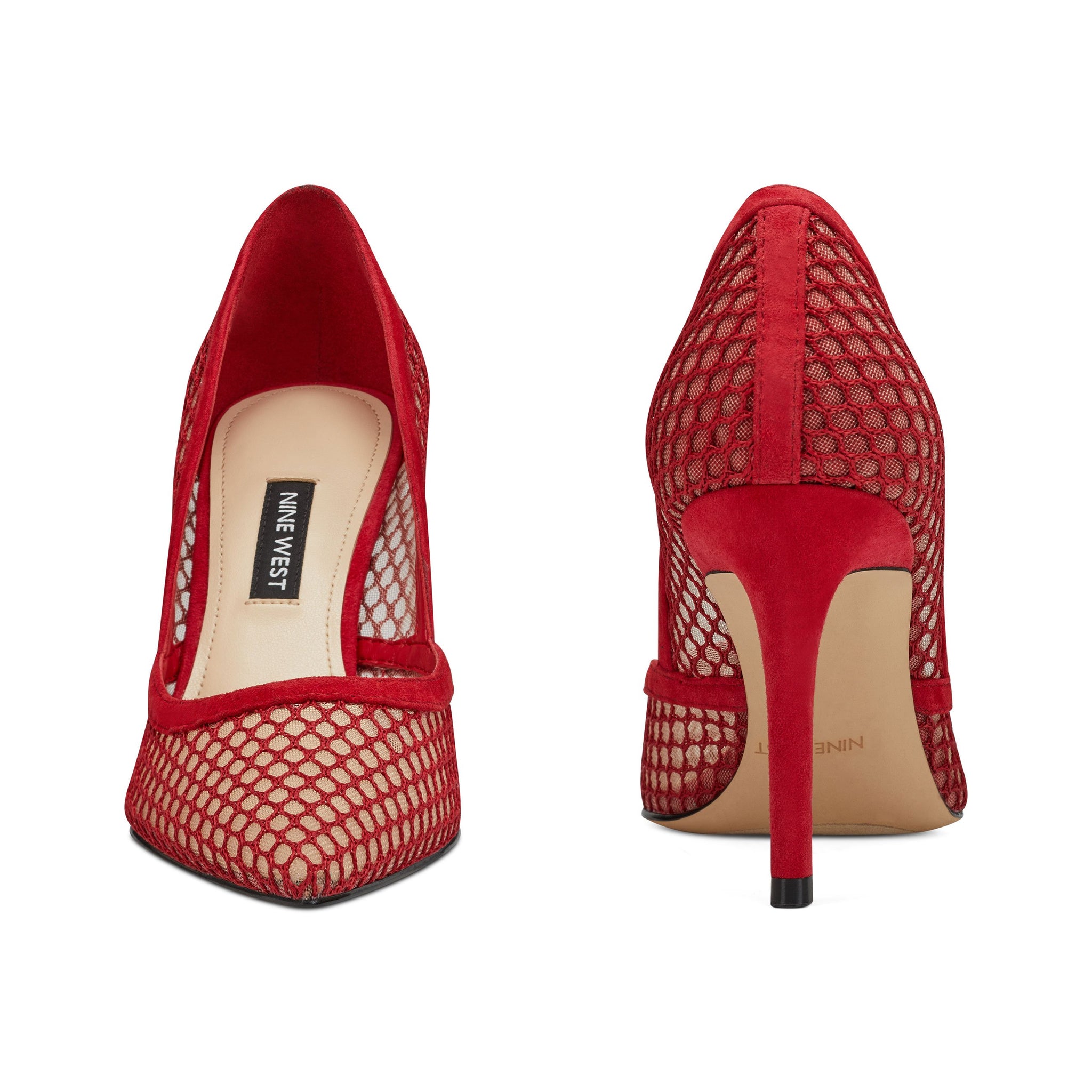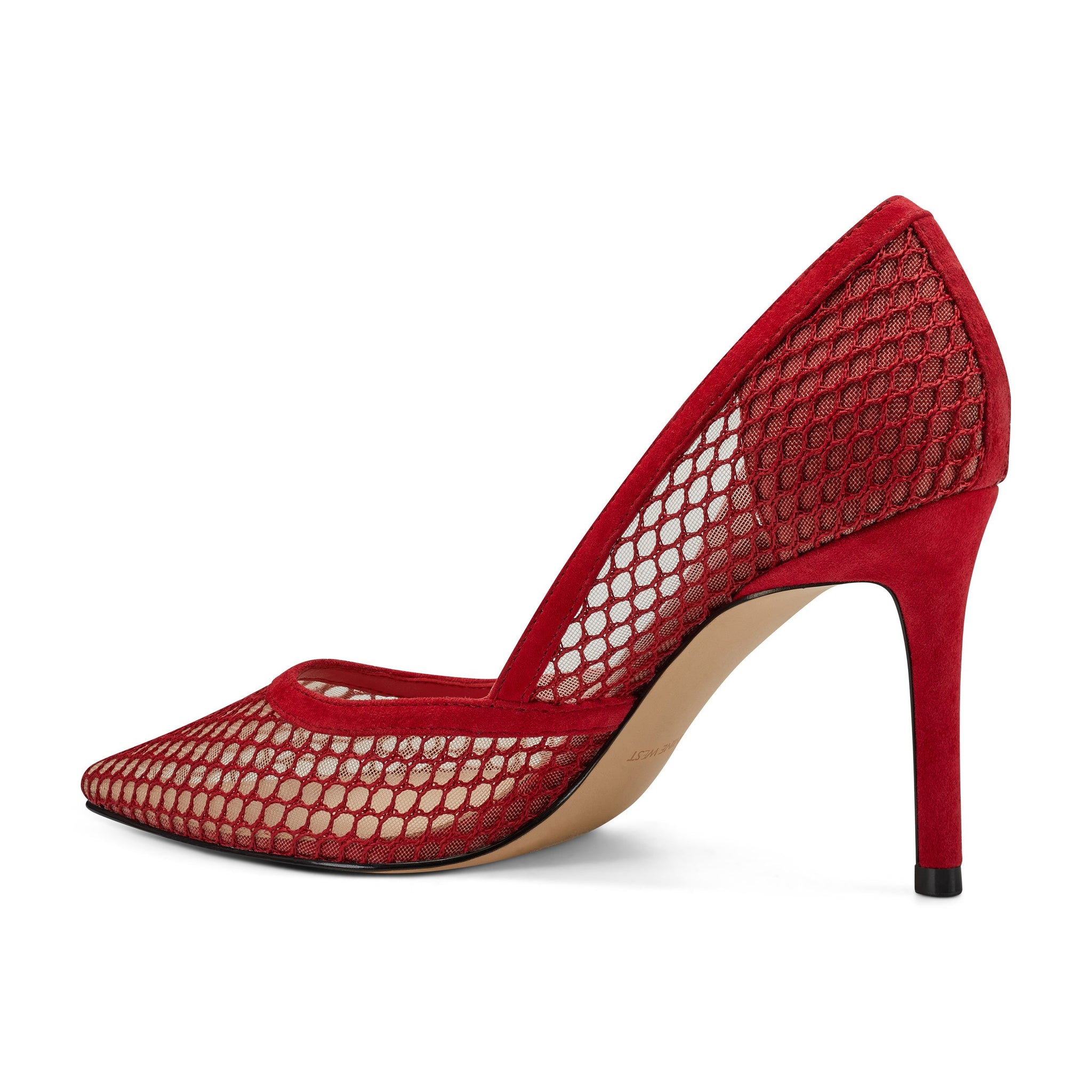 A classic pointy-toe pump lifted by a striking 3.34" heel gets a dramatic update in a lovely fishnet mesh.