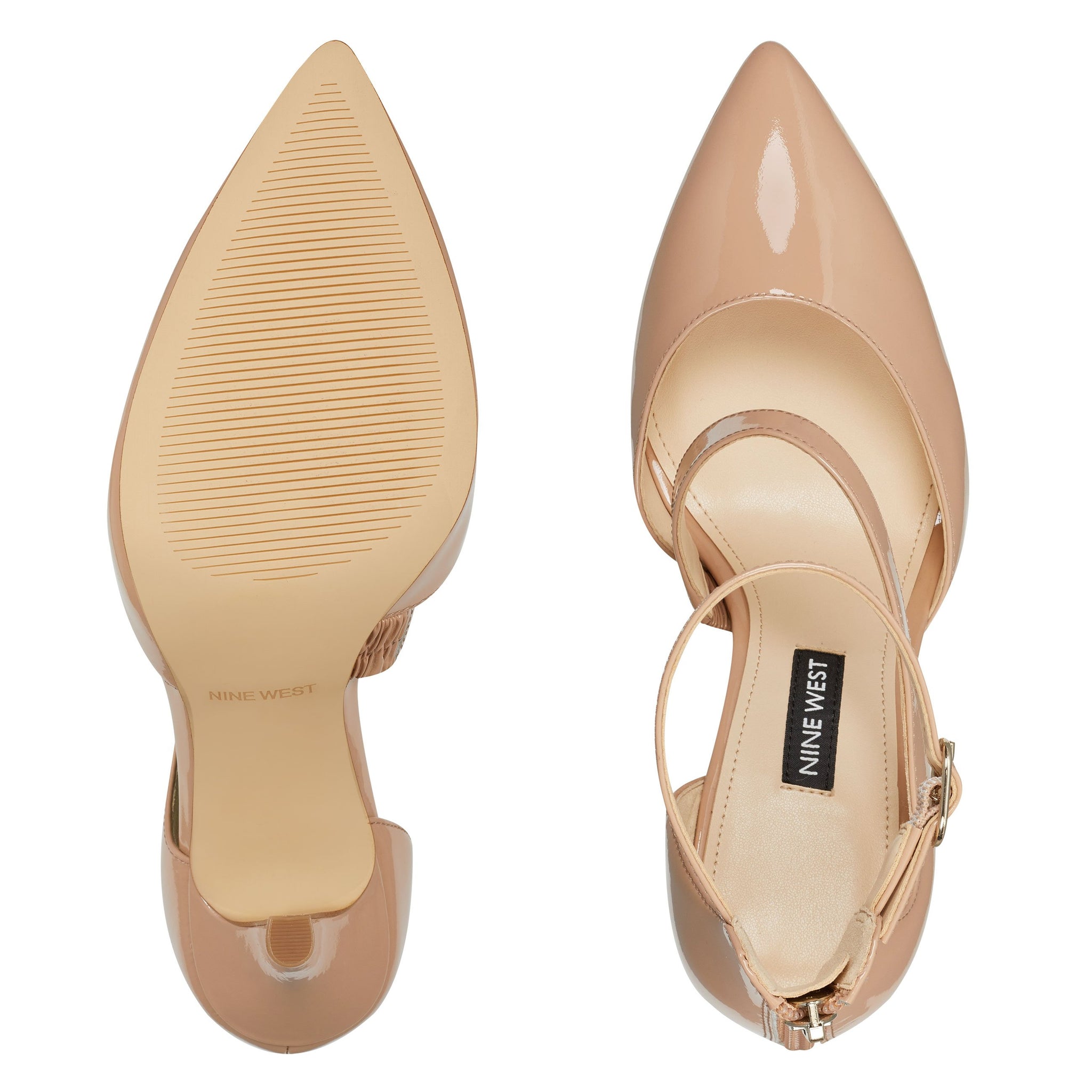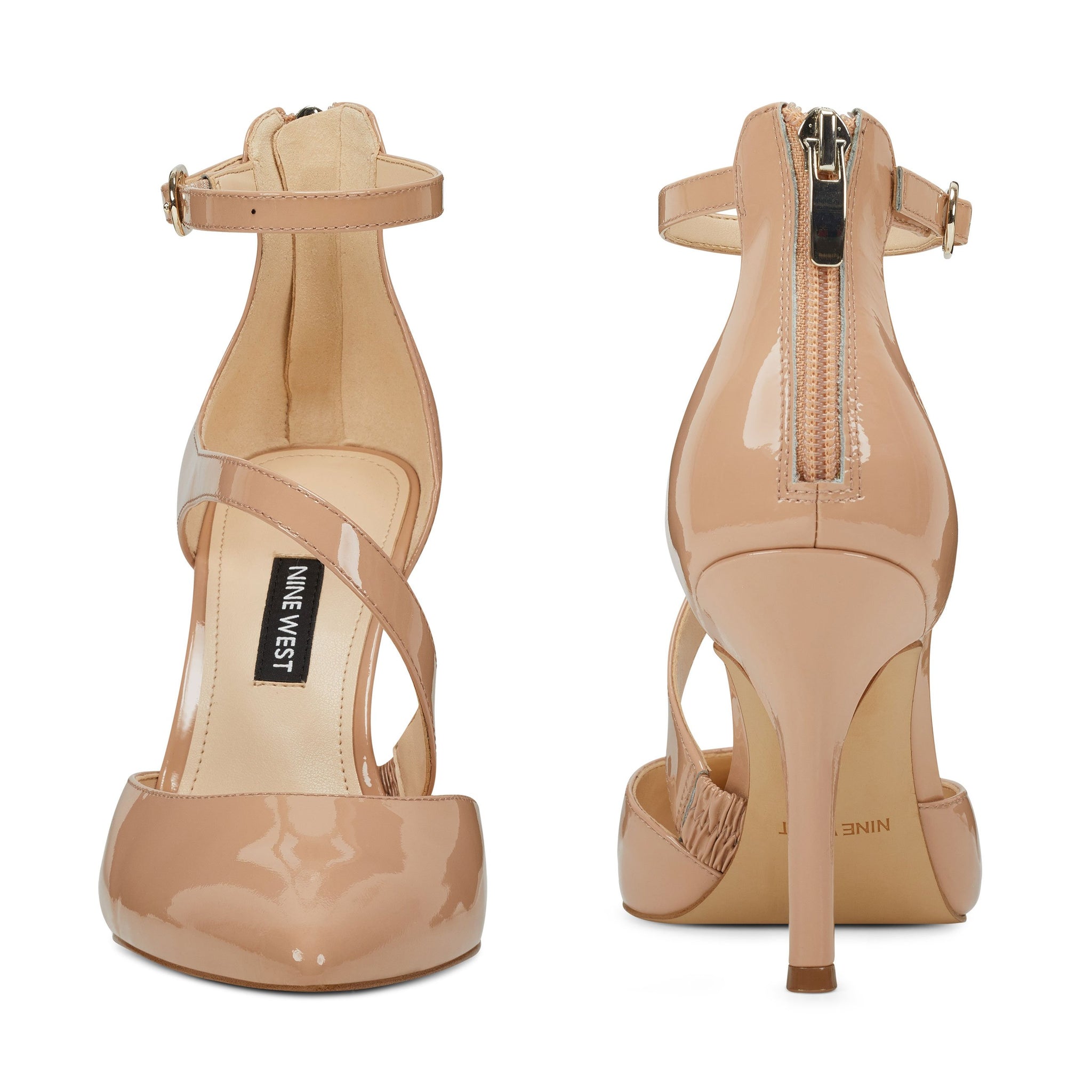 A sweeping diagonal strap adds an extra level of drama to a pointy-toe pump perched on a 3.62" heel.