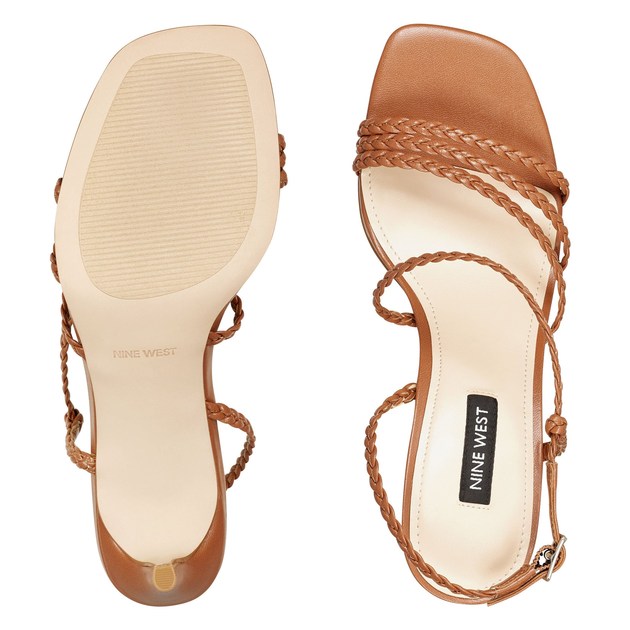A myriad of braided straps defines our Game sandal with a barely-there silhouette, lifted by a 3.07" heel.