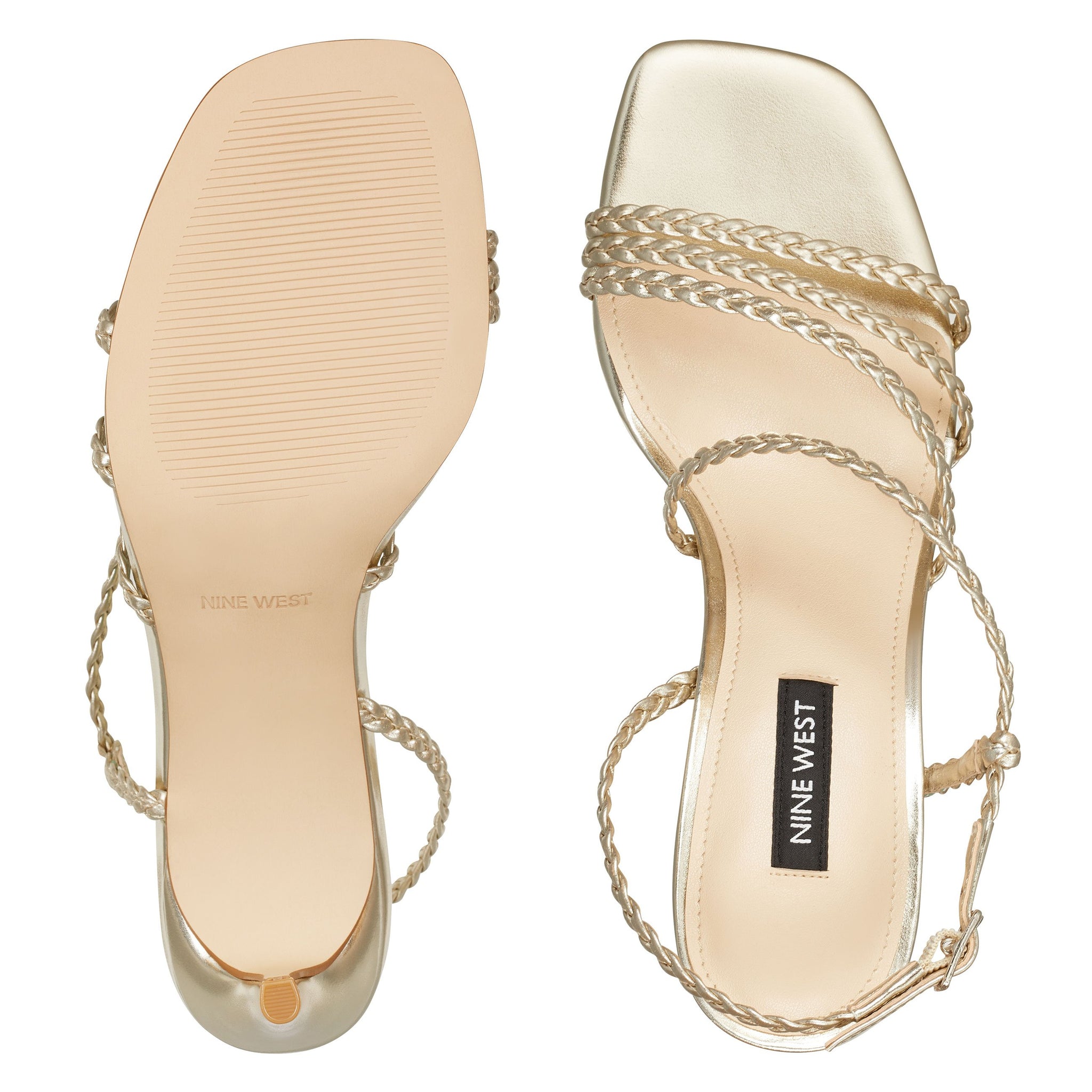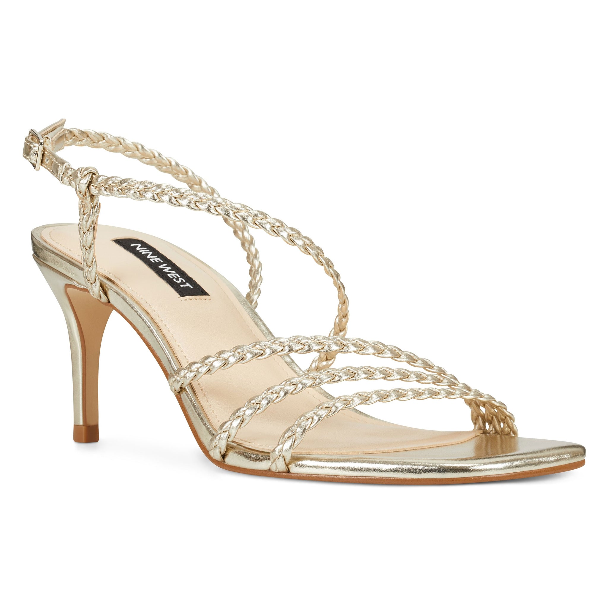 A myriad of braided straps defines our Game sandal with a barely-there silhouette, lifted by a 3.07" heel.