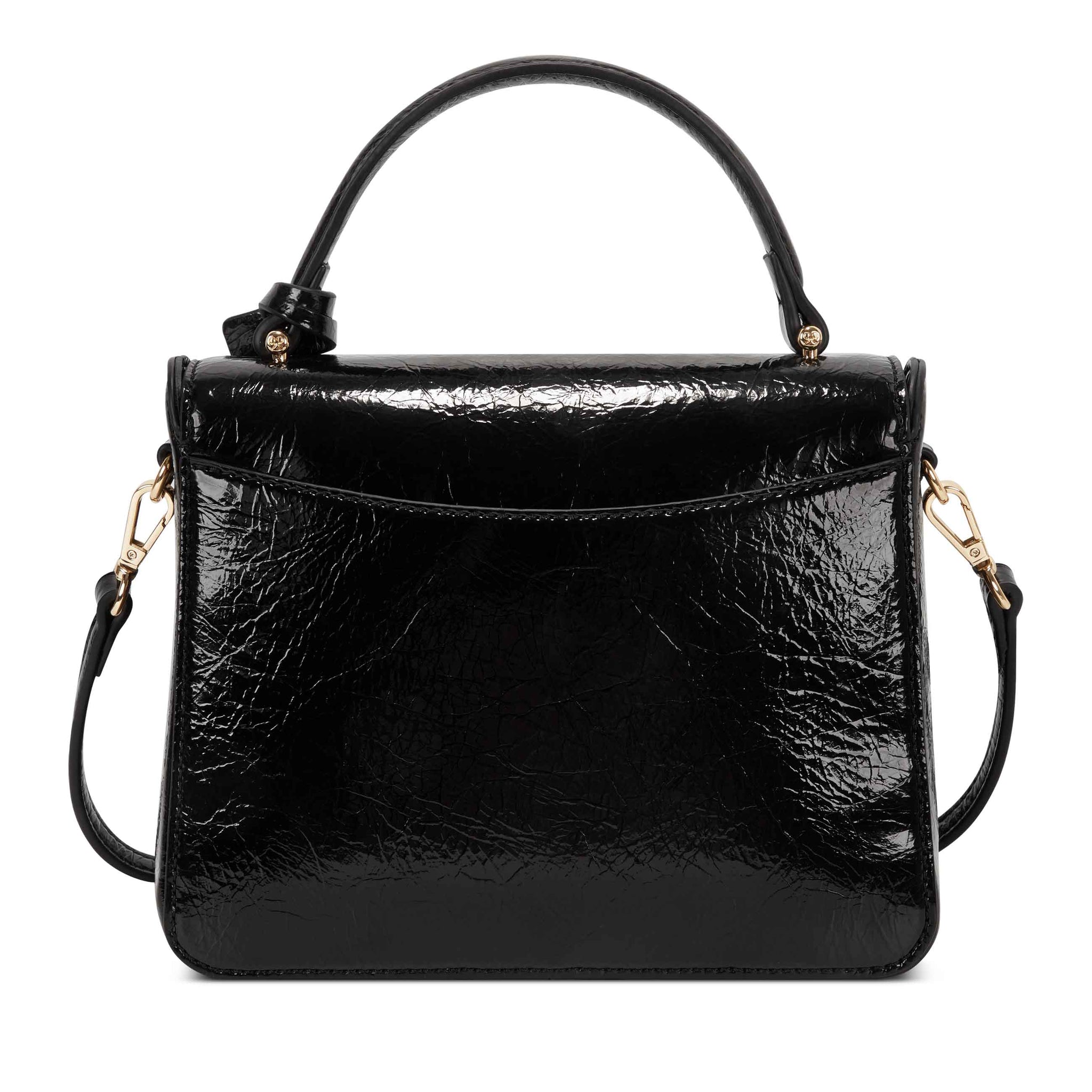 Chic mini satchel look with a removable crossbody strap to wear hands free. Interior is large enough to hold your phone and large wallet. Features a flap magnetic closure with hardware and branding details.