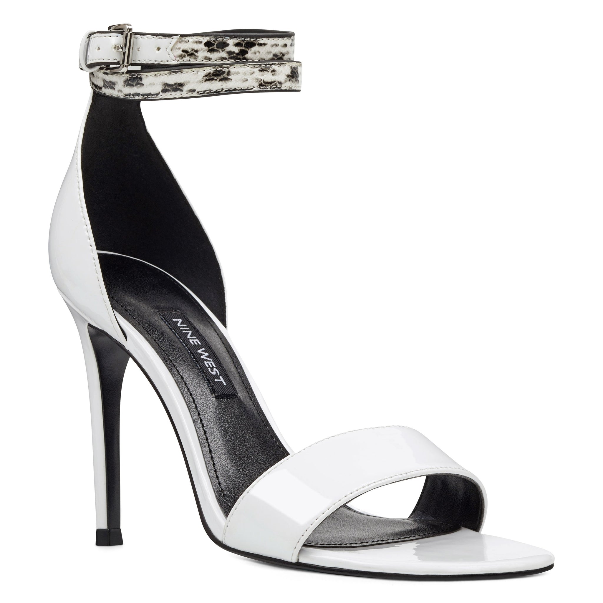 A lofty adjustable, snake-embossed ankle strap is offset by a pretty open-toe on our Nika sandals lifted by an impressive 4" heel.