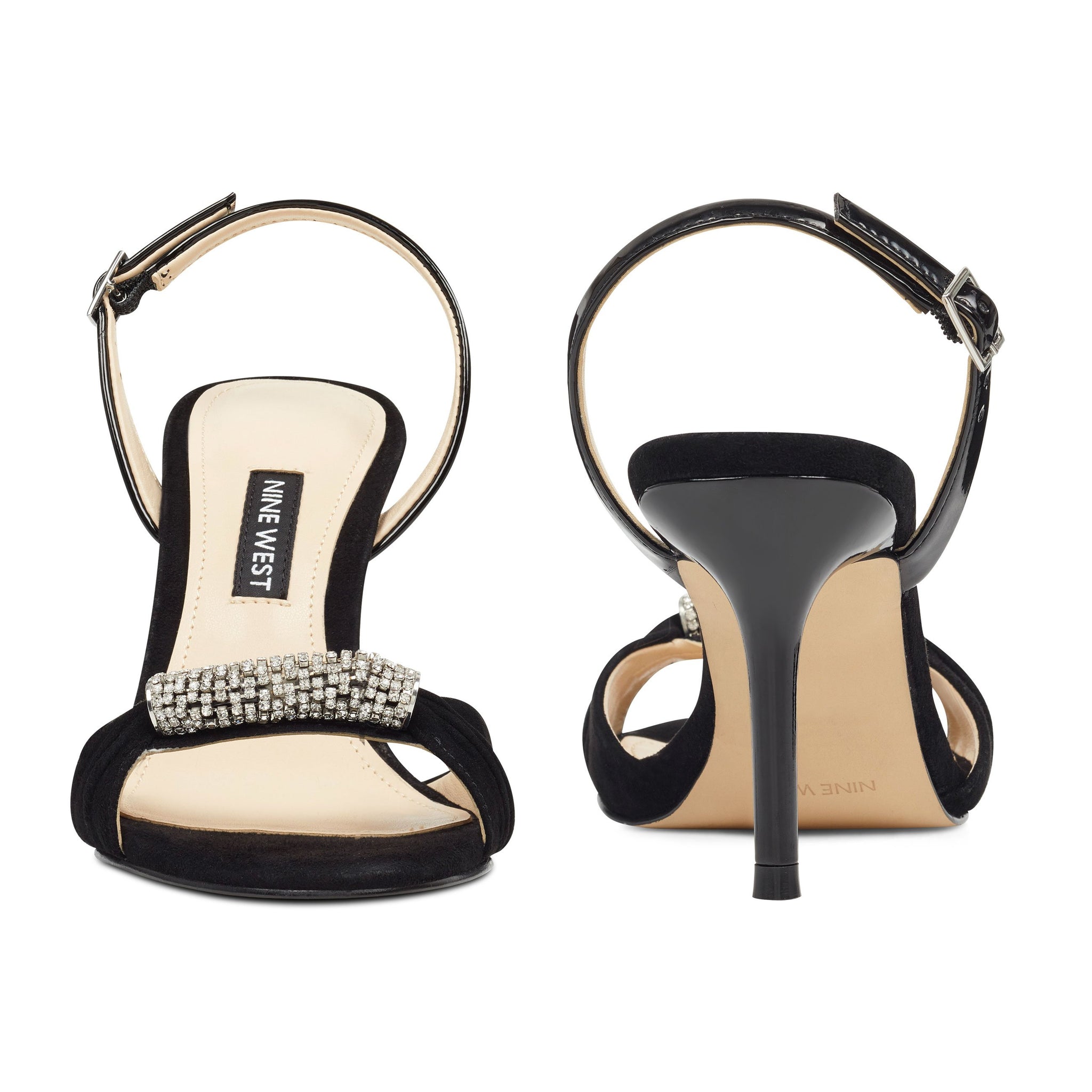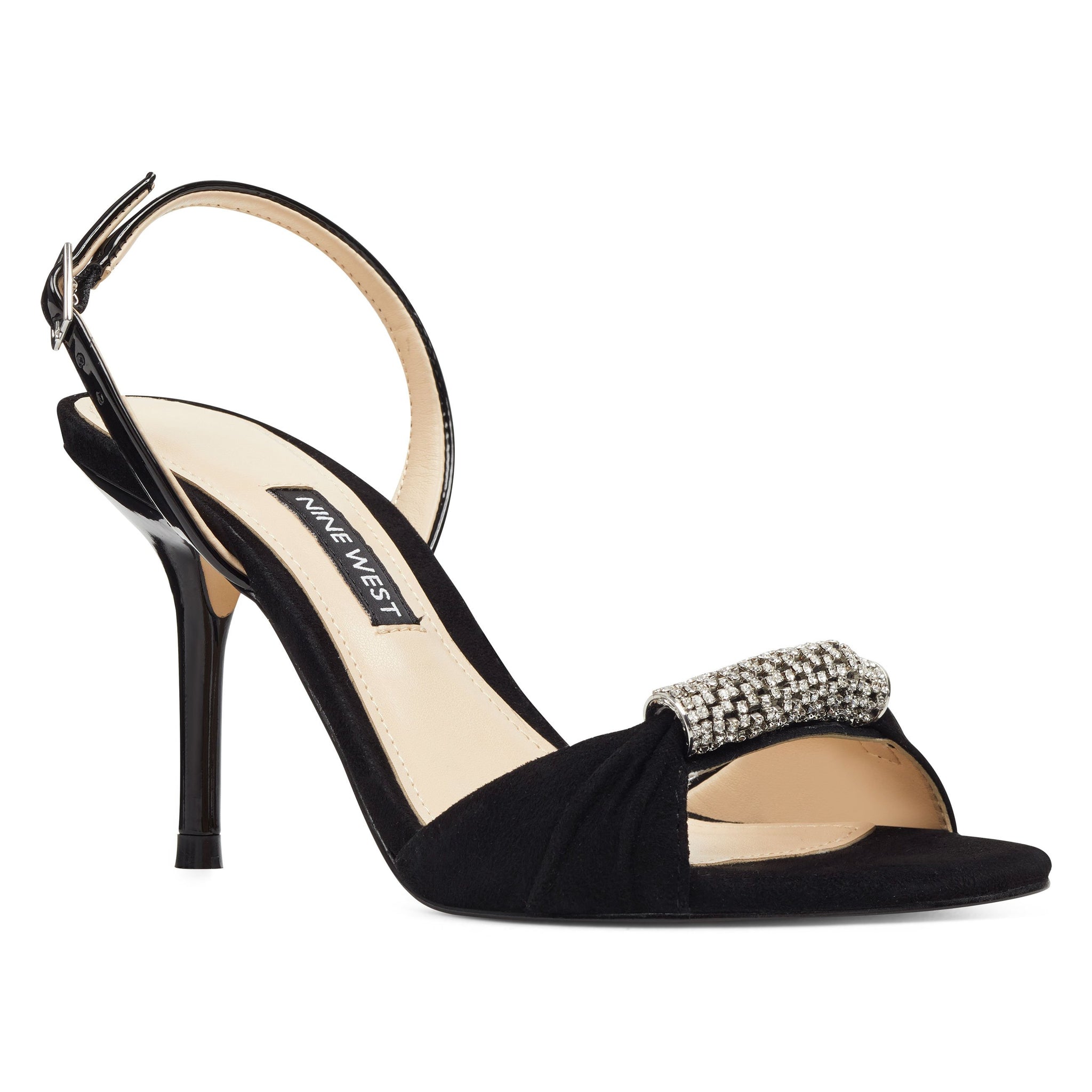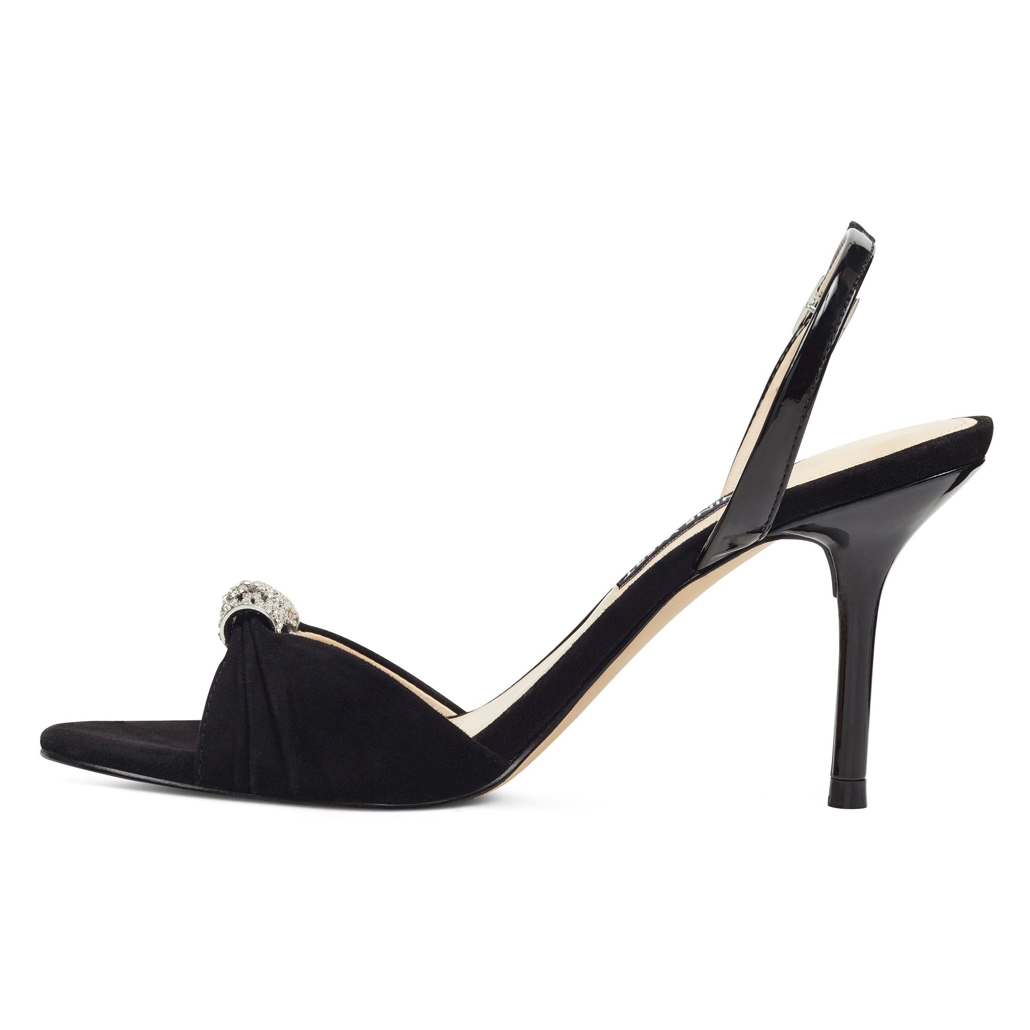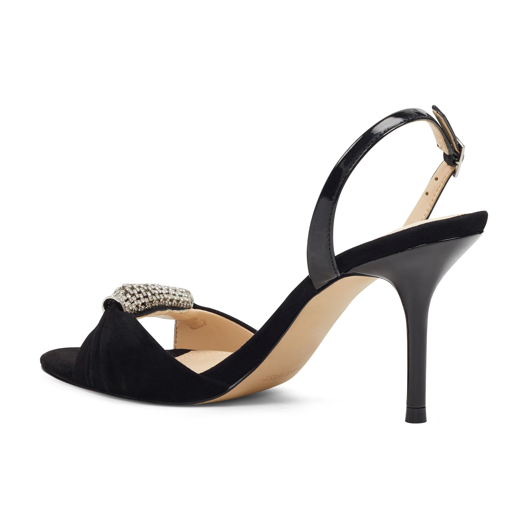 Uptown elegance is captured in our Ondrea slingback sandals counterbalanced by a pedi-ready open toe enhanced by a jeweled strap lifted by a 3 1/4" heel.