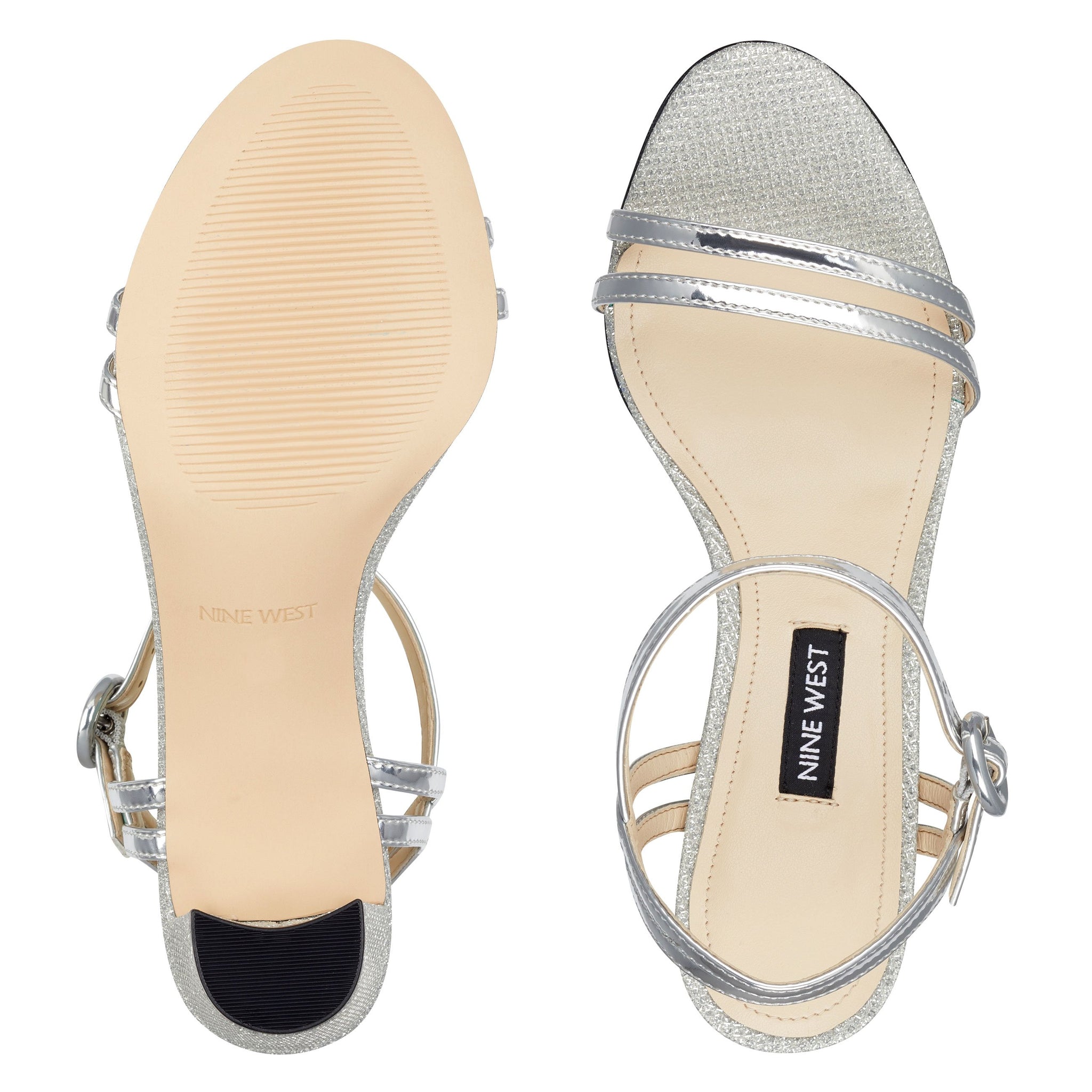 Barely there dual toe straps are offset by a trio of straps designed to secure the back of the foot, secured by an adjustable ankle strap.