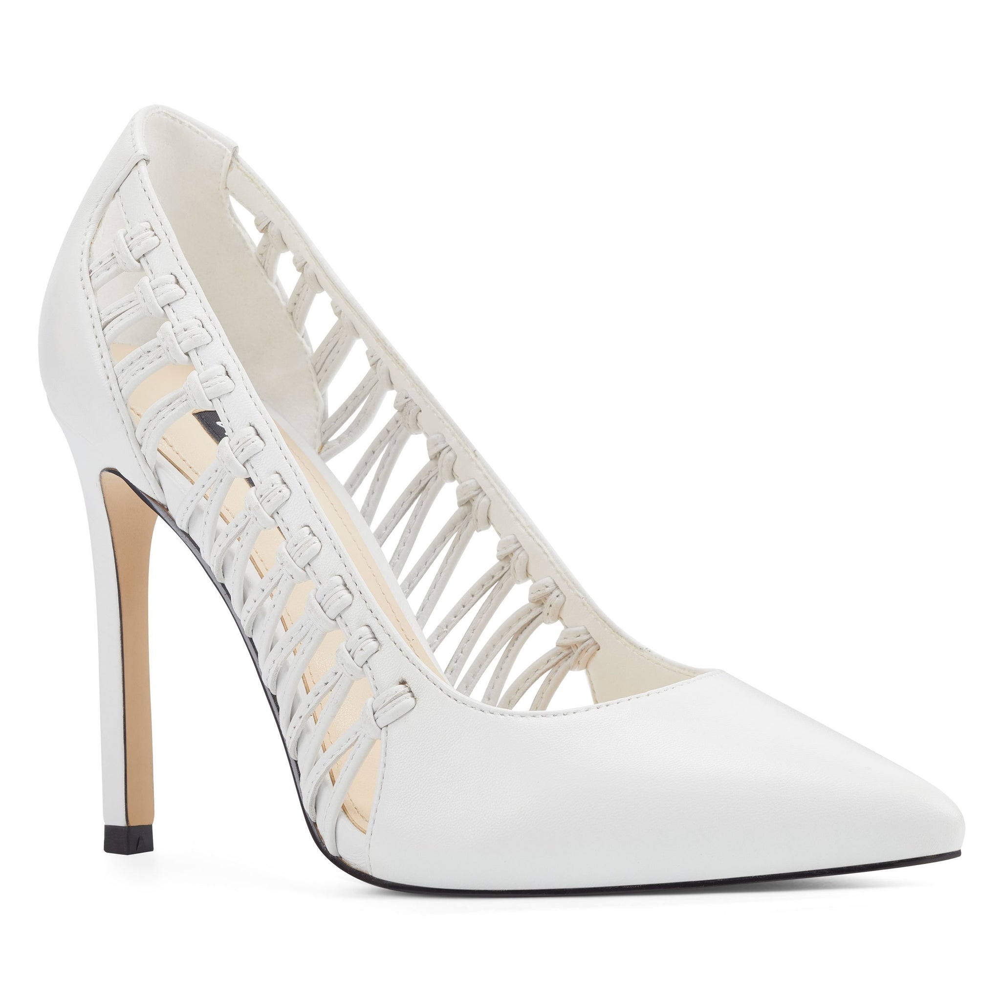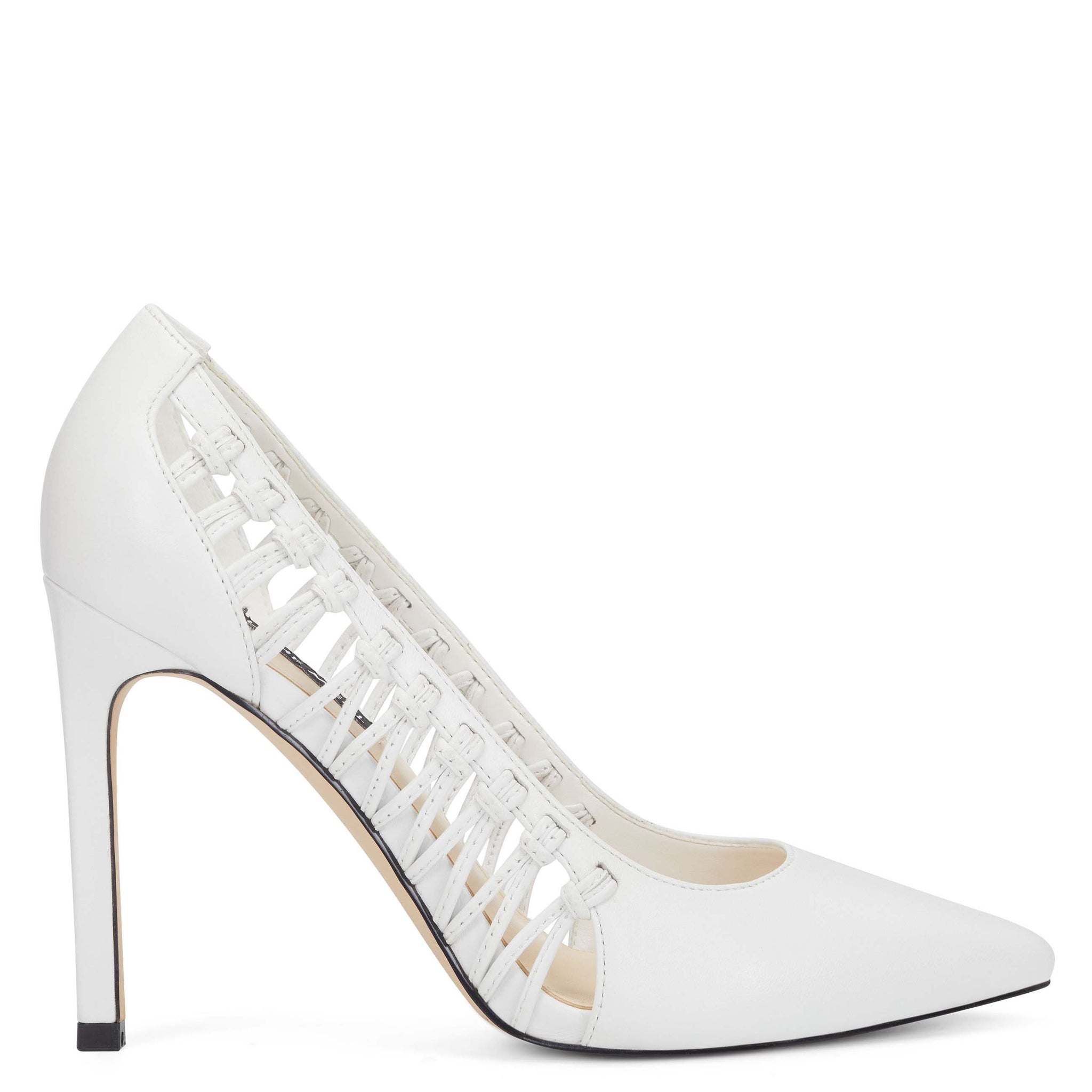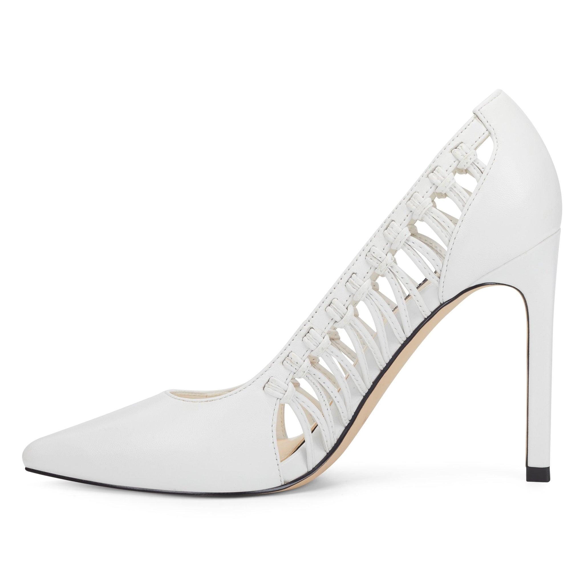 Lifted by a 3.94" stiletto heel, our Tansy pointy-toe pumps are highlighted with woven sides for an added measure of sophistication.