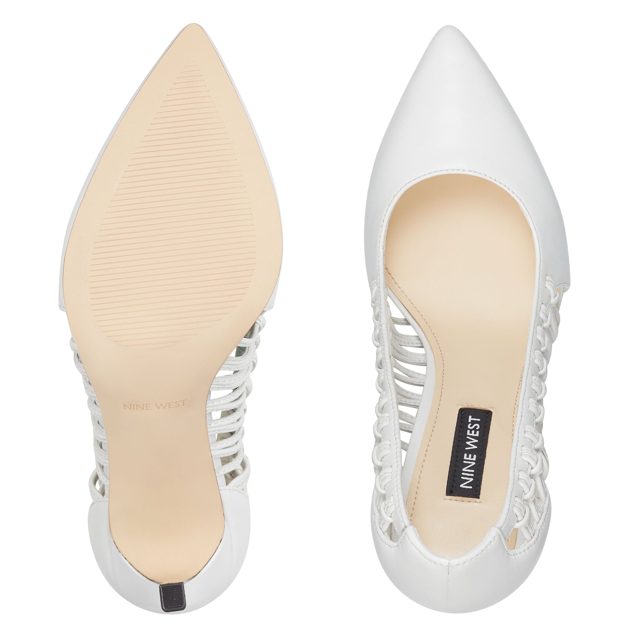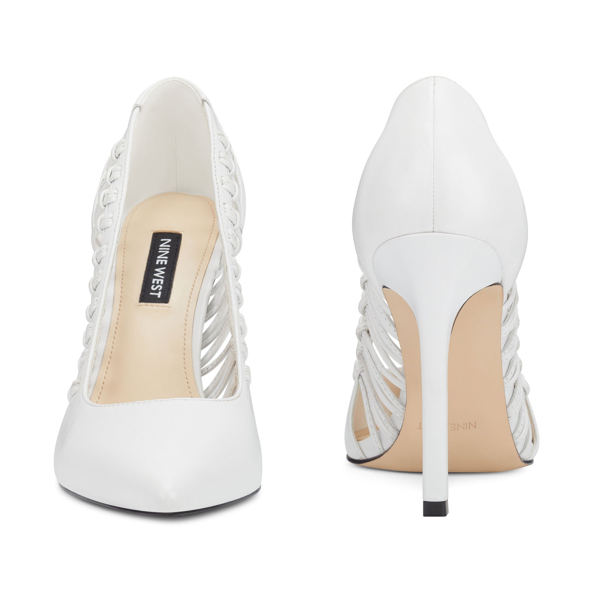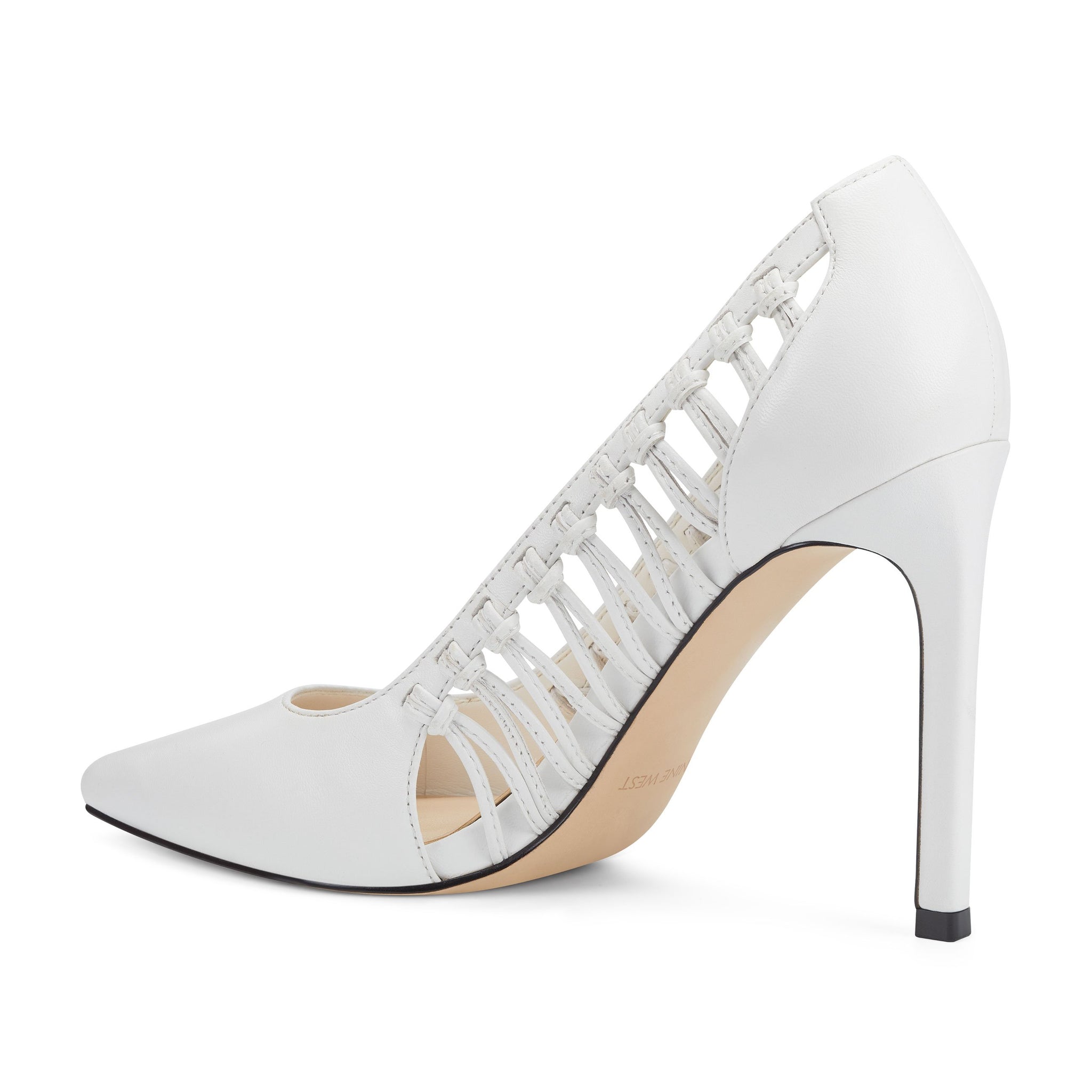 Lifted by a 3.94" stiletto heel, our Tansy pointy-toe pumps are highlighted with woven sides for an added measure of sophistication.