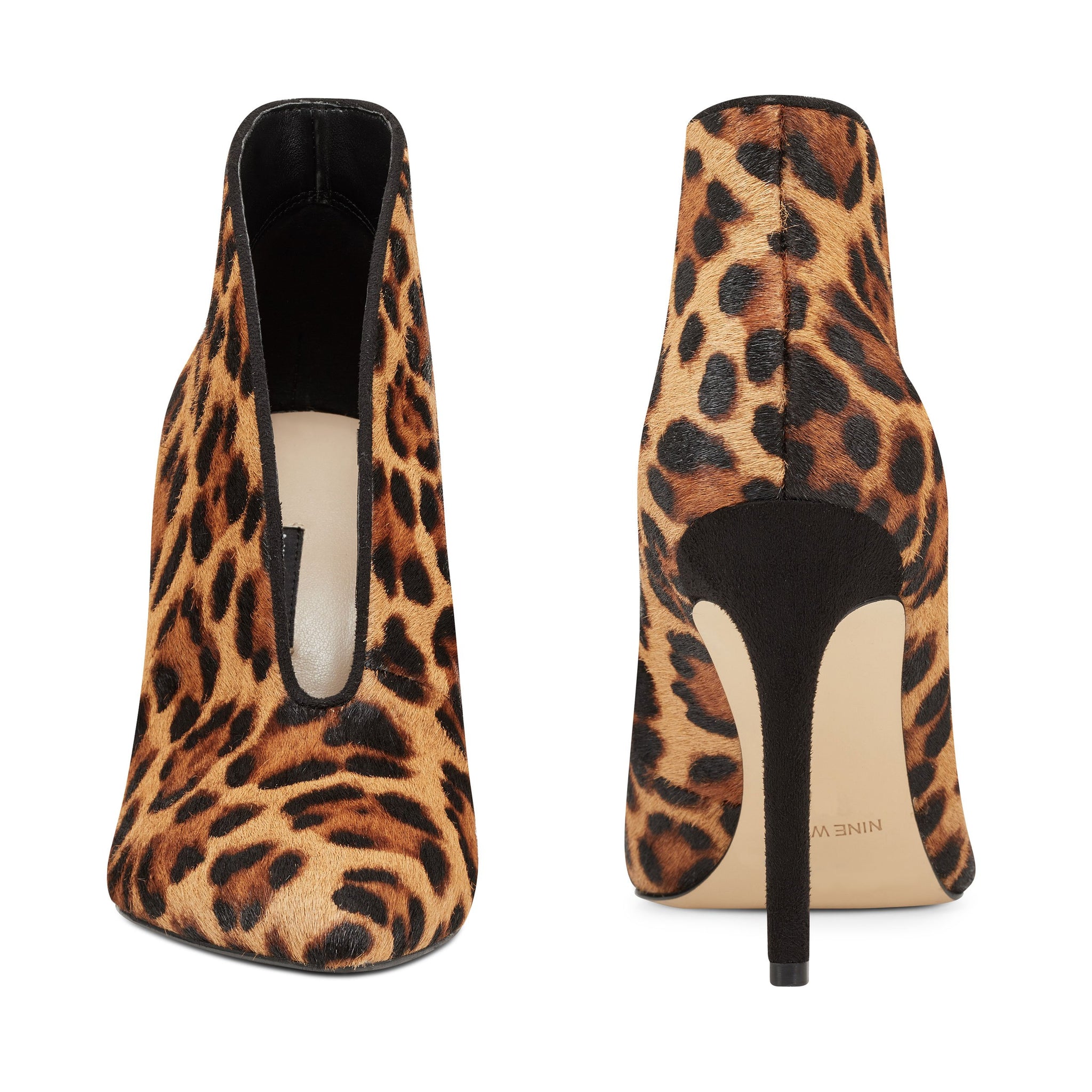 A plunging topline dramatizes out Tetty contemporary pointy-toe bootie counterbalanced by a sleek stiletto heel.