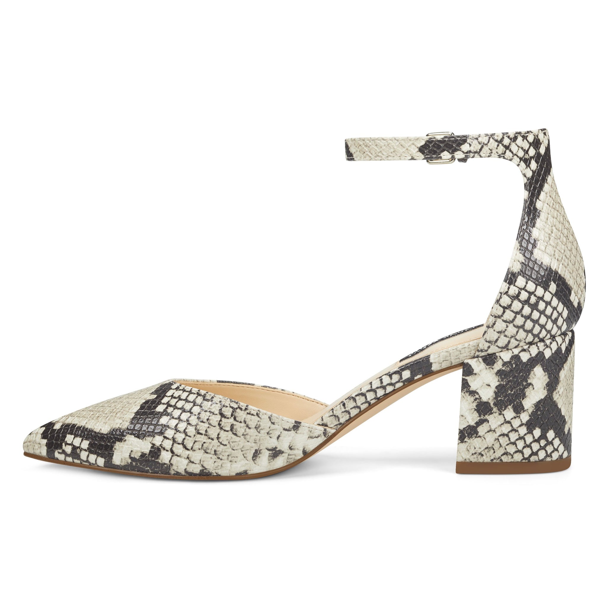 A low 2.36" block heel grounds our Trini pumps sporting a pointy-toe silhouette counterbalanced with an adjustable ankle strap for a perfect fit.