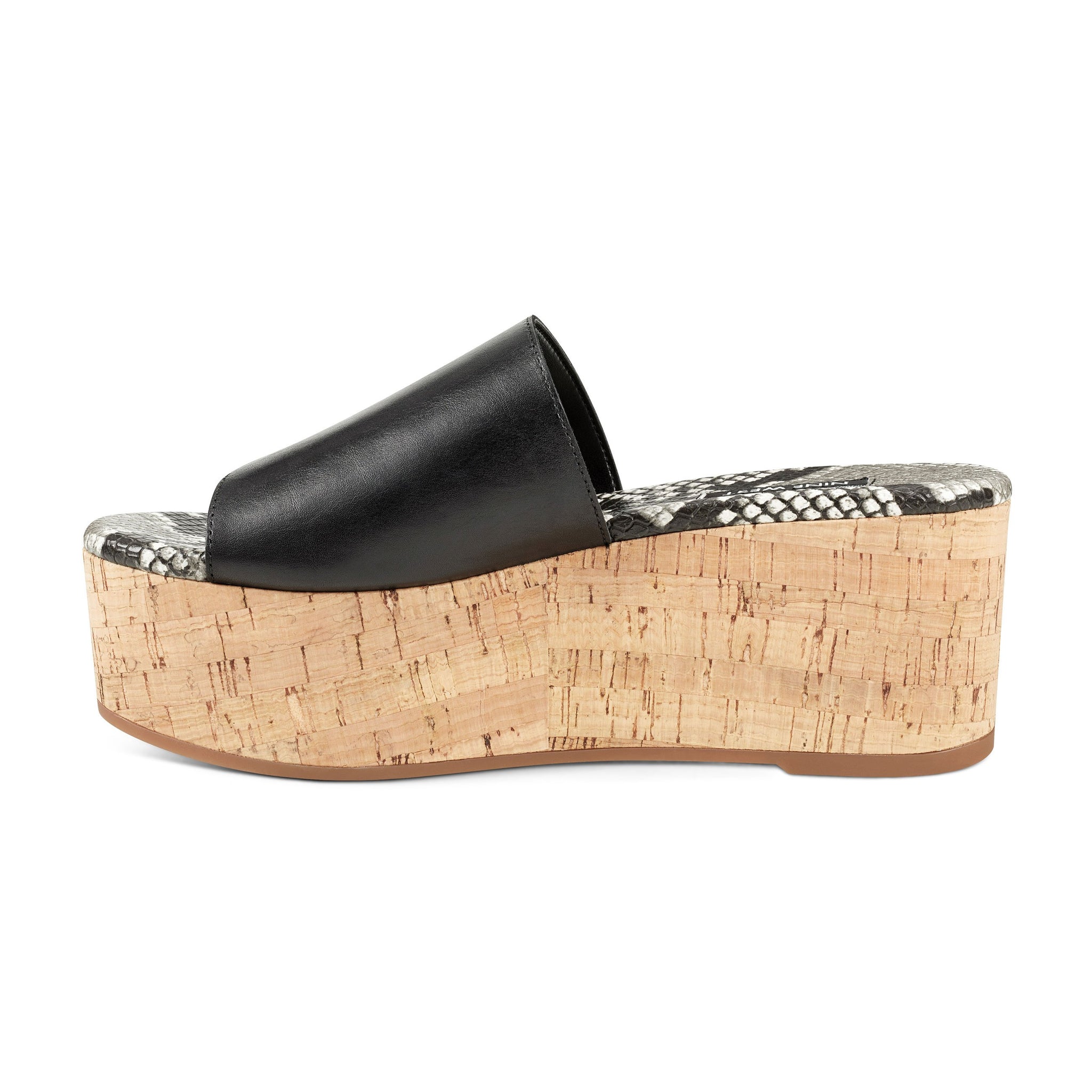 A wide band and bold cork platform heel make our retro Vale slide sandal a stylish way to accessorize your casual wardrobe.